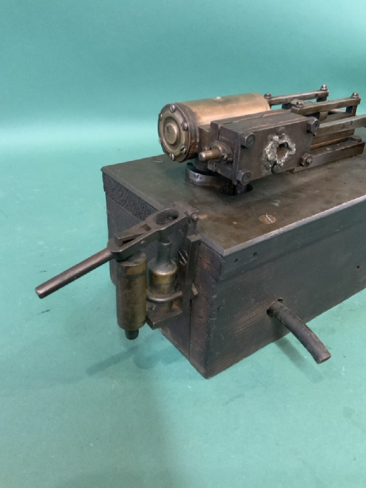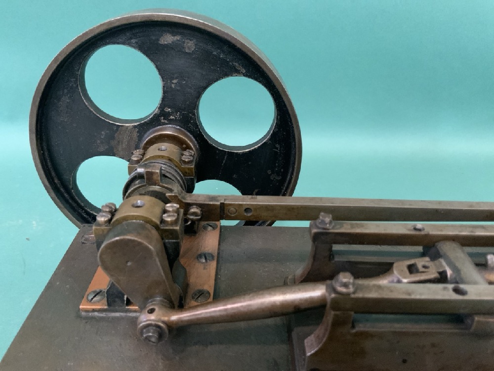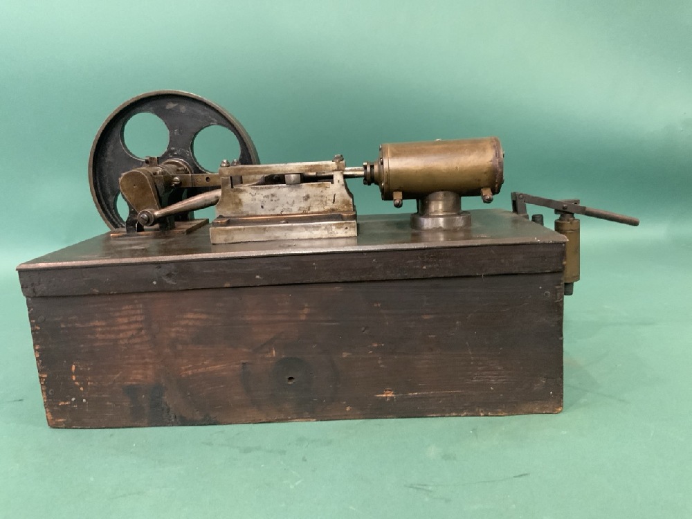 Small Antique Steam Engine with base. Dimensions: 12”x 5 3/4”, 5” Wheel, Total 12 lbs
