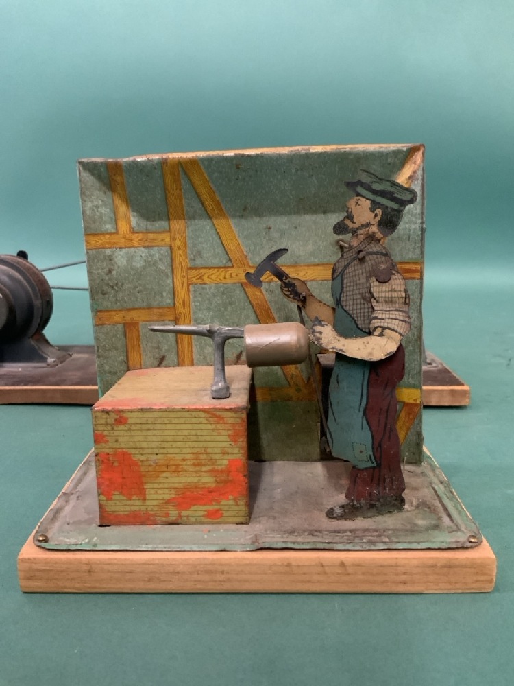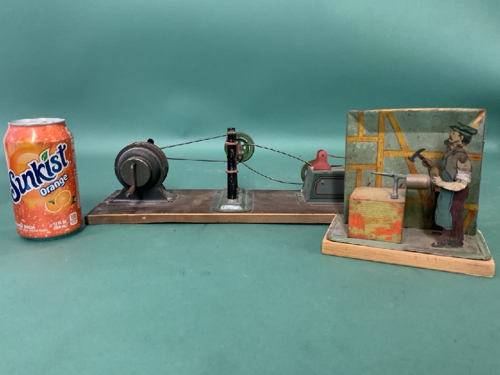 Two (2) German Tin Toys- Marked Hess Dynamobil Hammer Toy # 62 and Bing Workman ( Blacksmith)