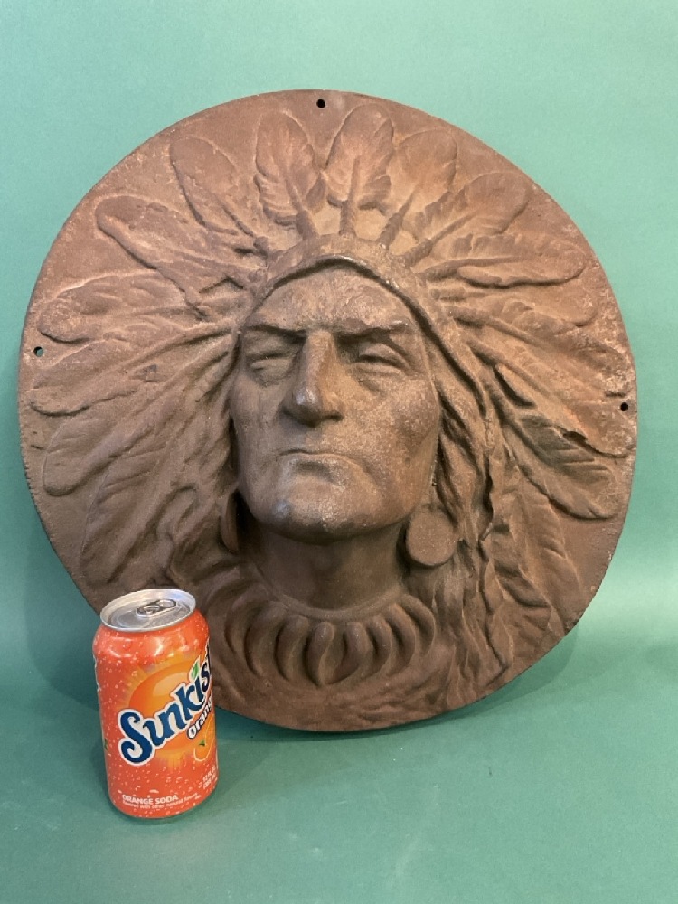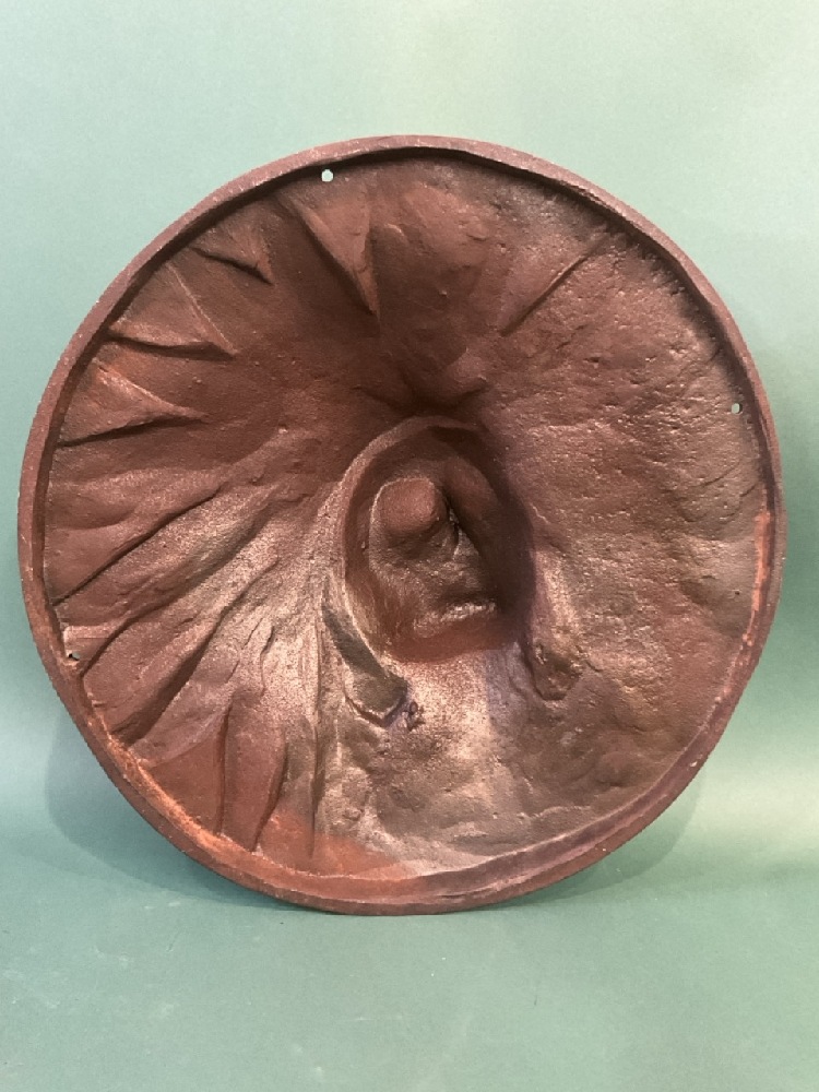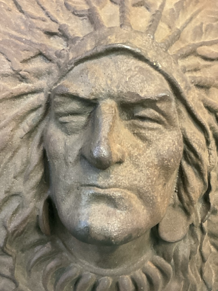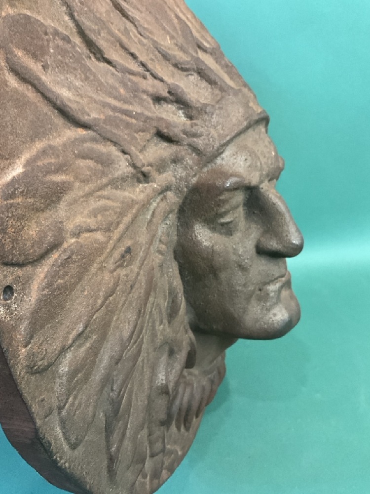 Cast Iron Native American Plaque. Would have been mounted on building. Late 19th or Early 20th Century.