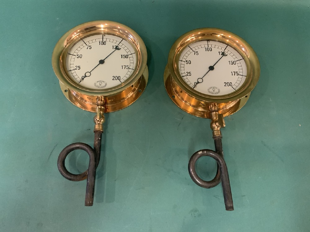 Pair of Brass Schaeffer & Budenberg Brooklyn, NY. Steam Engine Gauges Pat. Feb.19, 1924 From Letchworth Village Power Plant