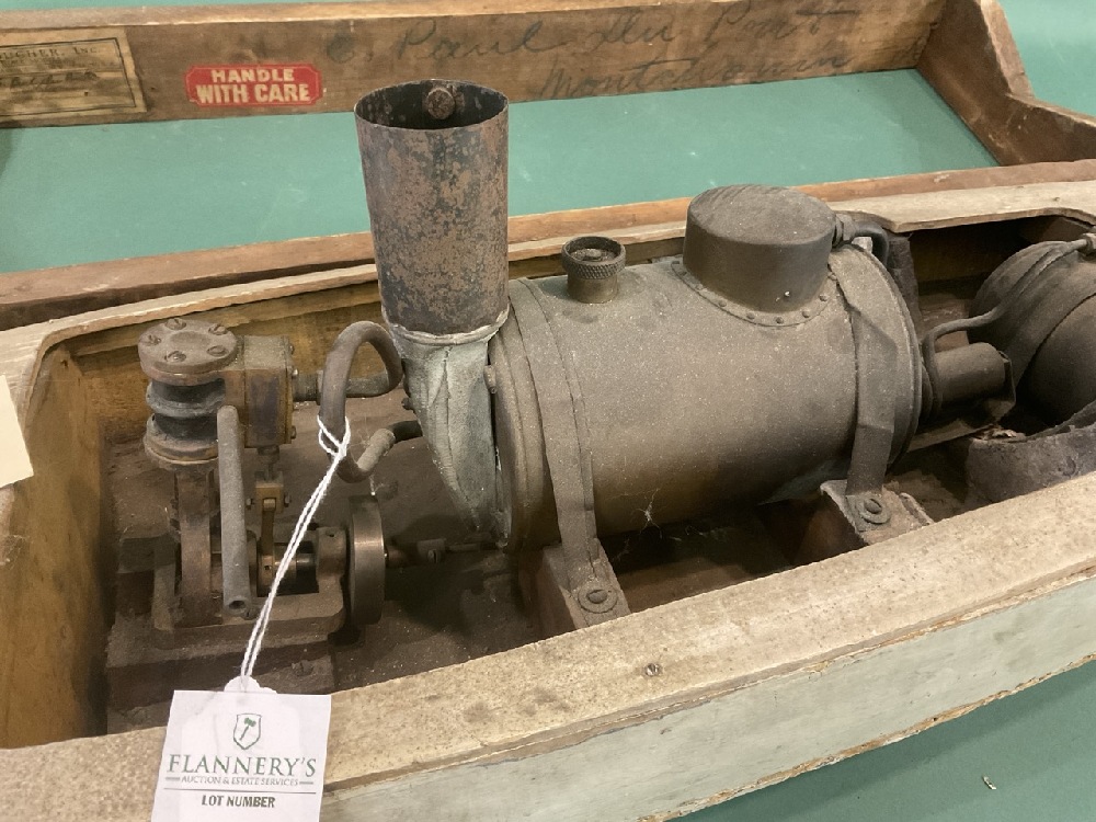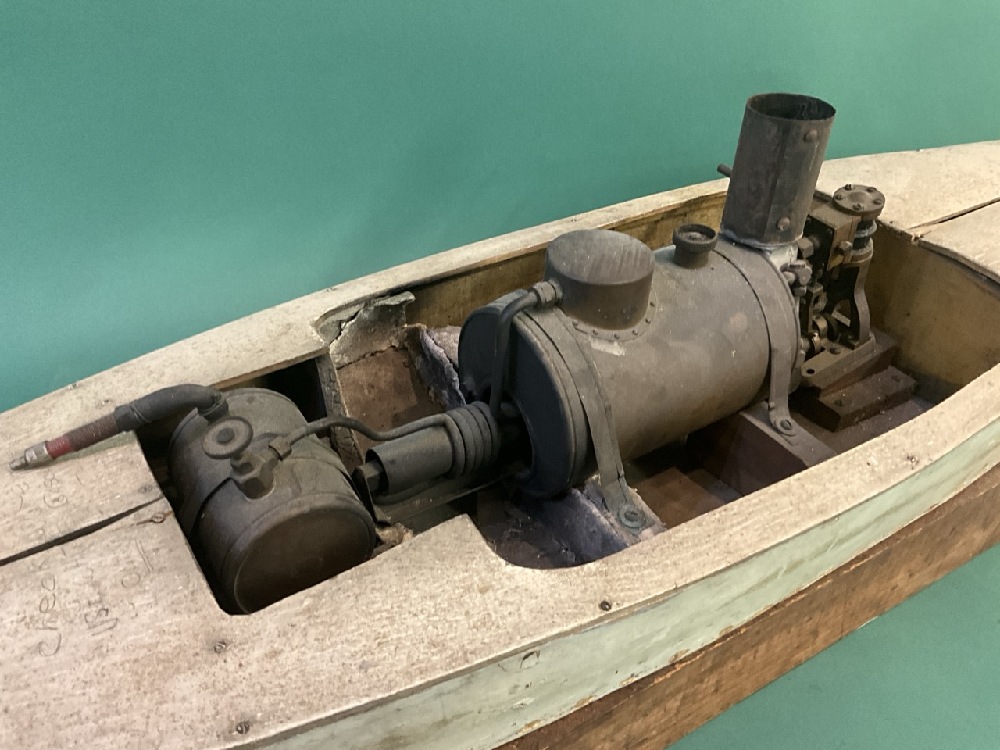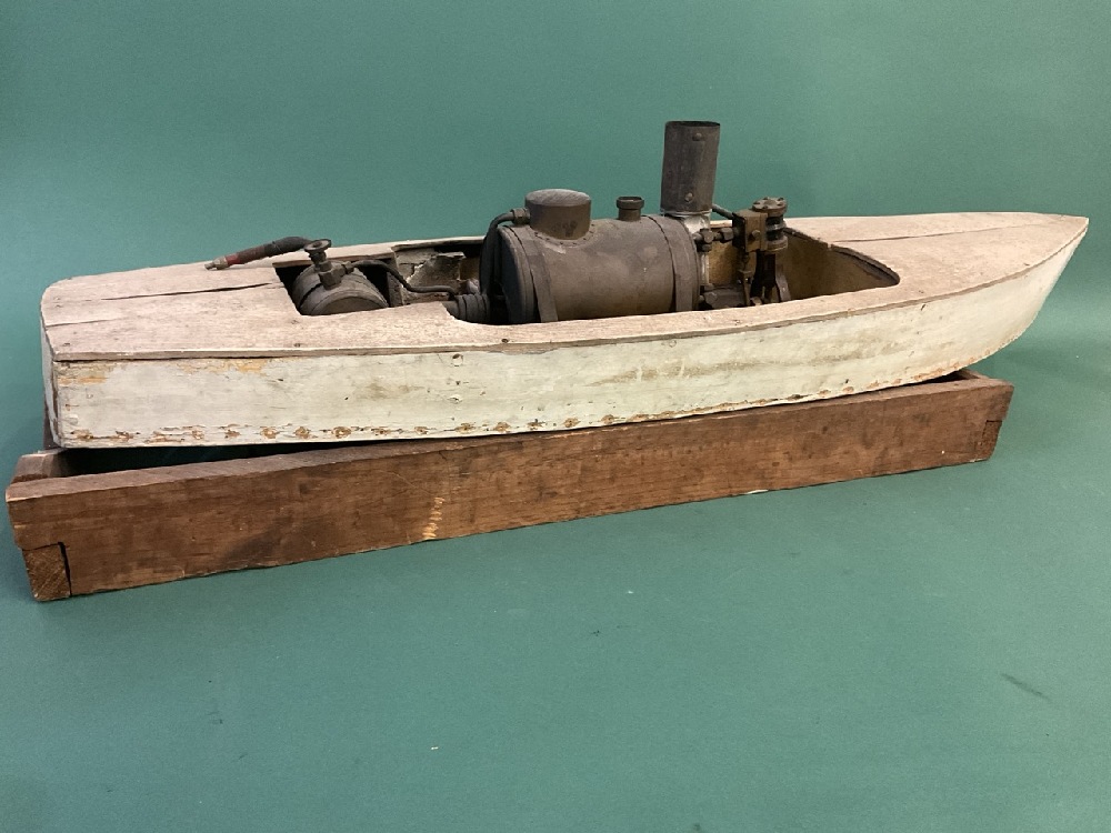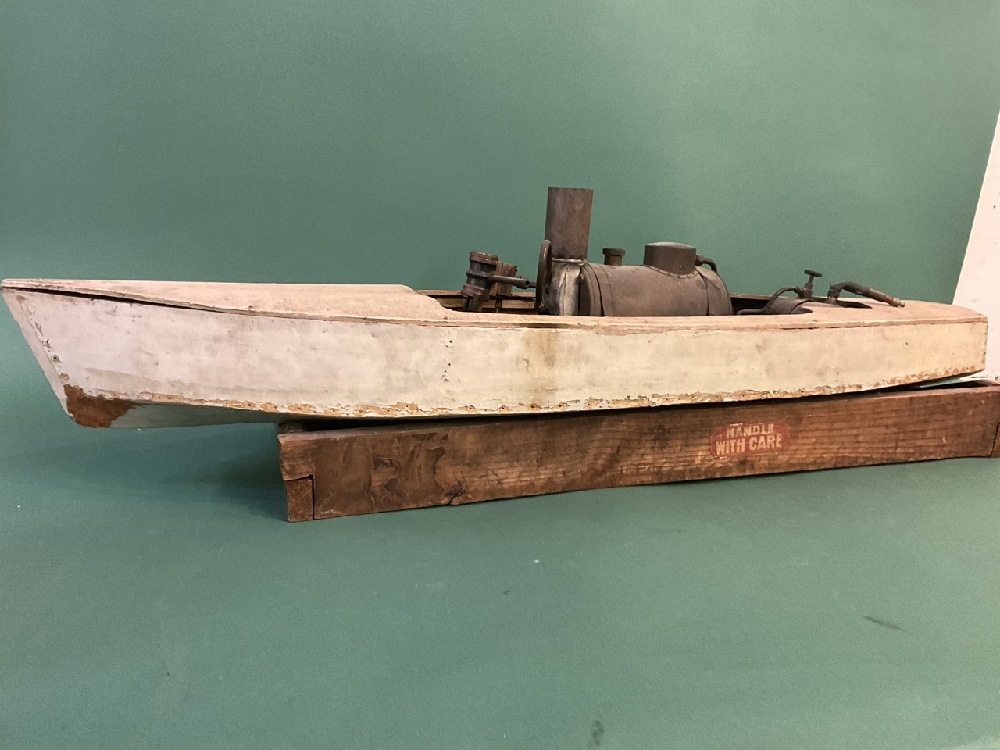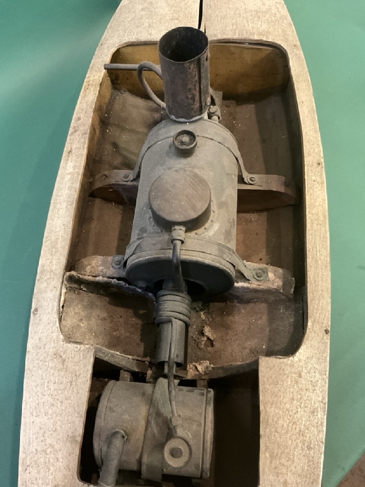 Antique 38” Pond Boat w/ Boucher Steam Engine and Boiler on Stand, DuPont Family Provenance.
