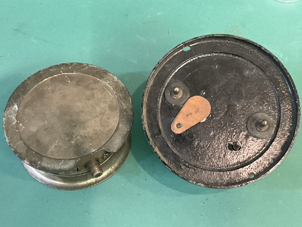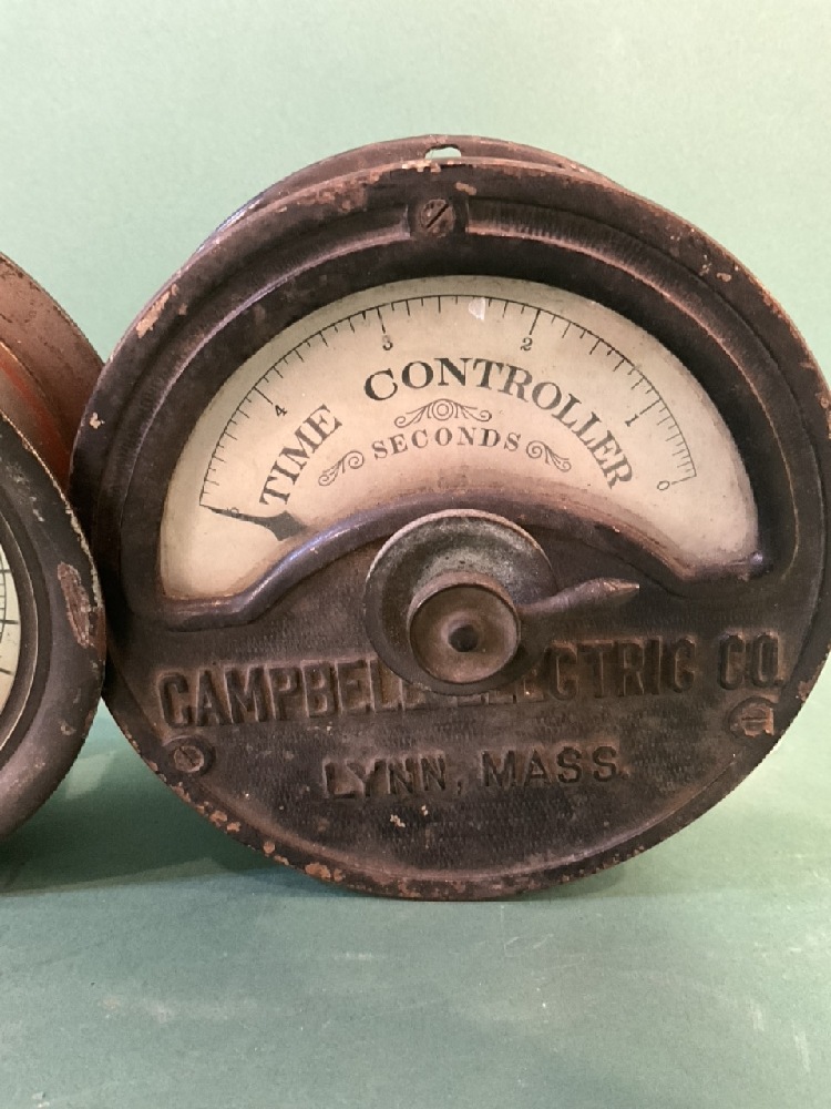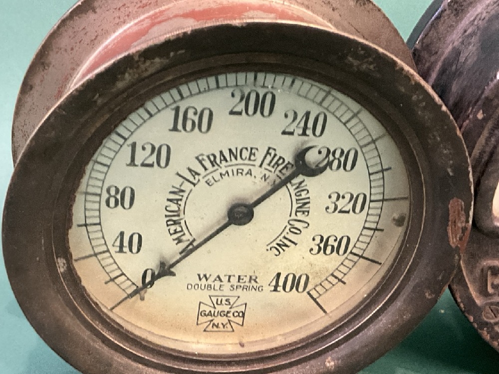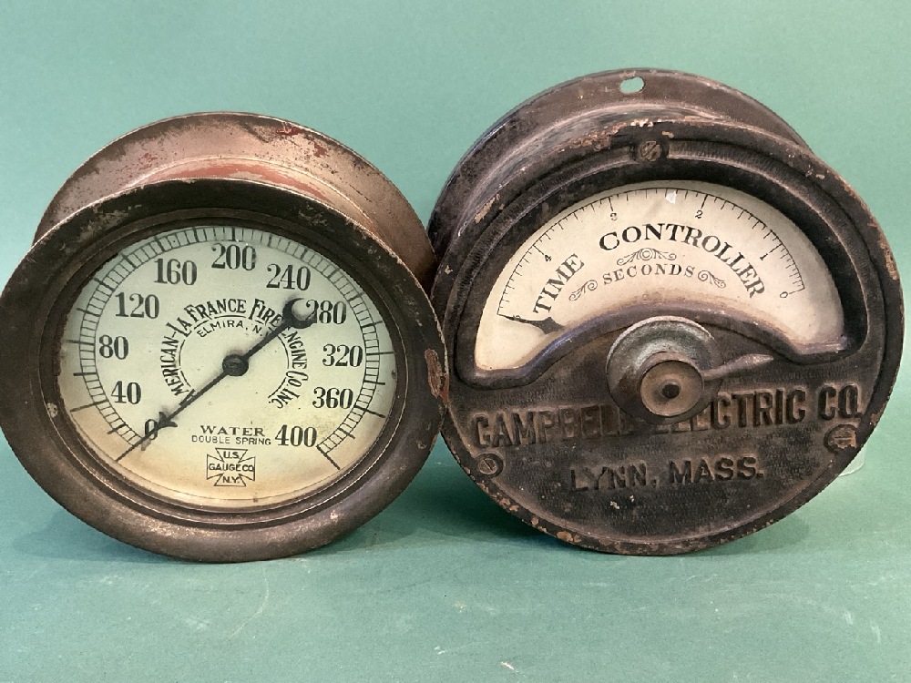 Pair of All Brass Antique Gauges - “American LaFrance Fire Engine” Water & Campbell electric Time Controller.