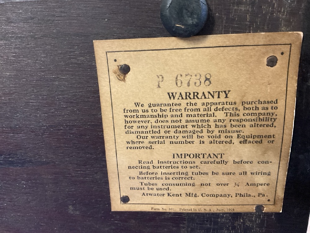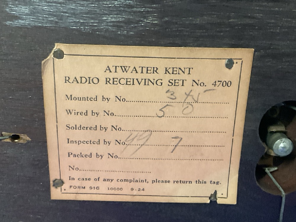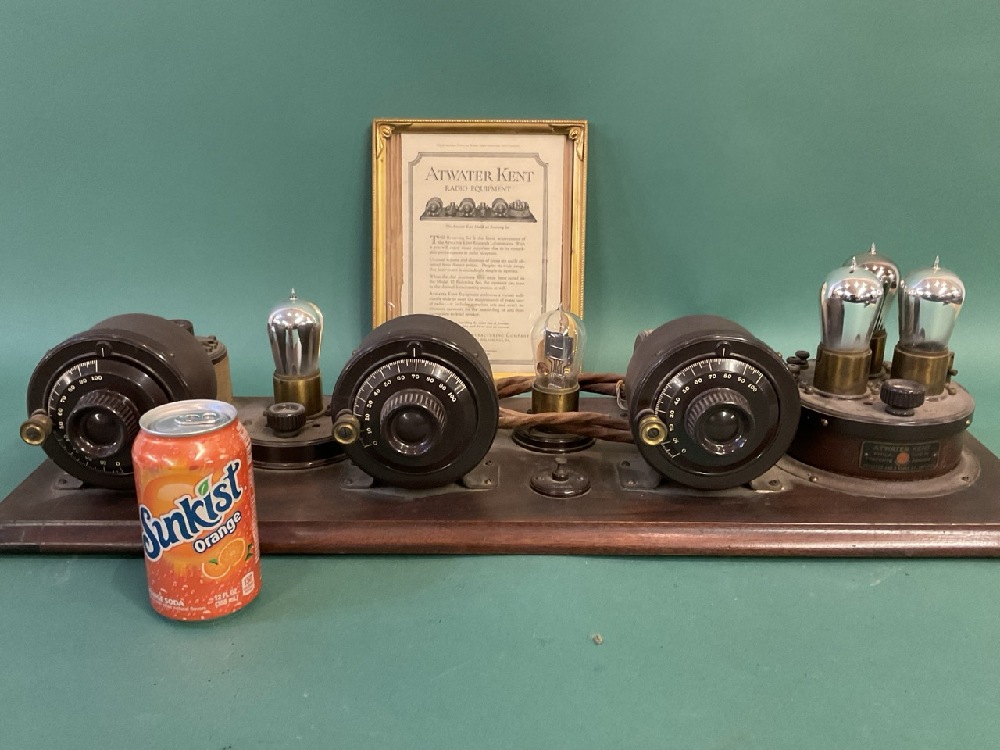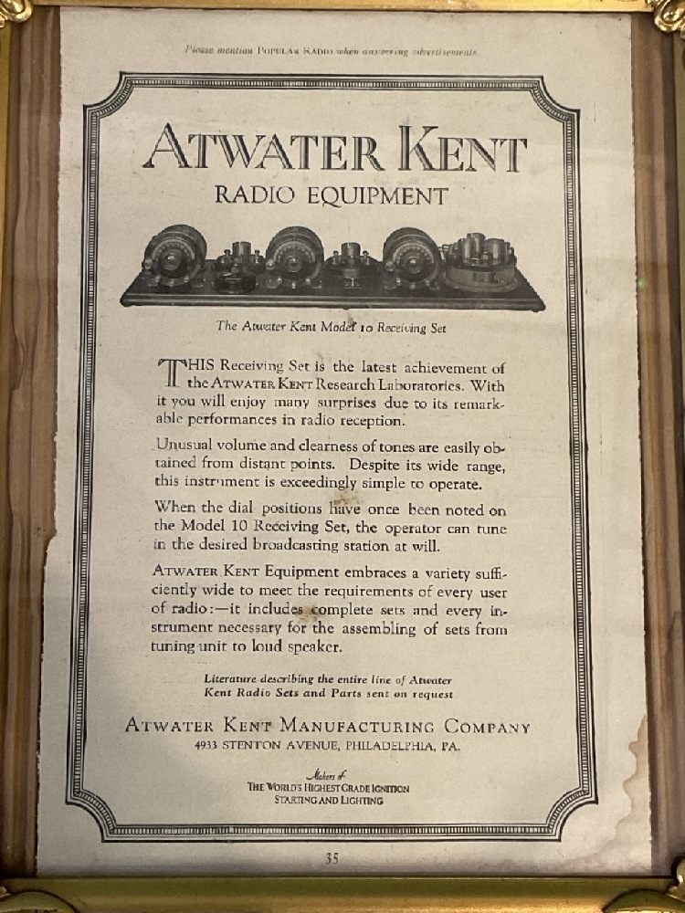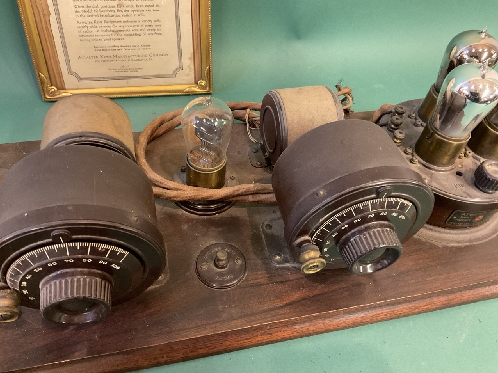 1920's Atwater Kent Model 10C Breadboard Radio with framed advertisement. Very good condition. Not tested.