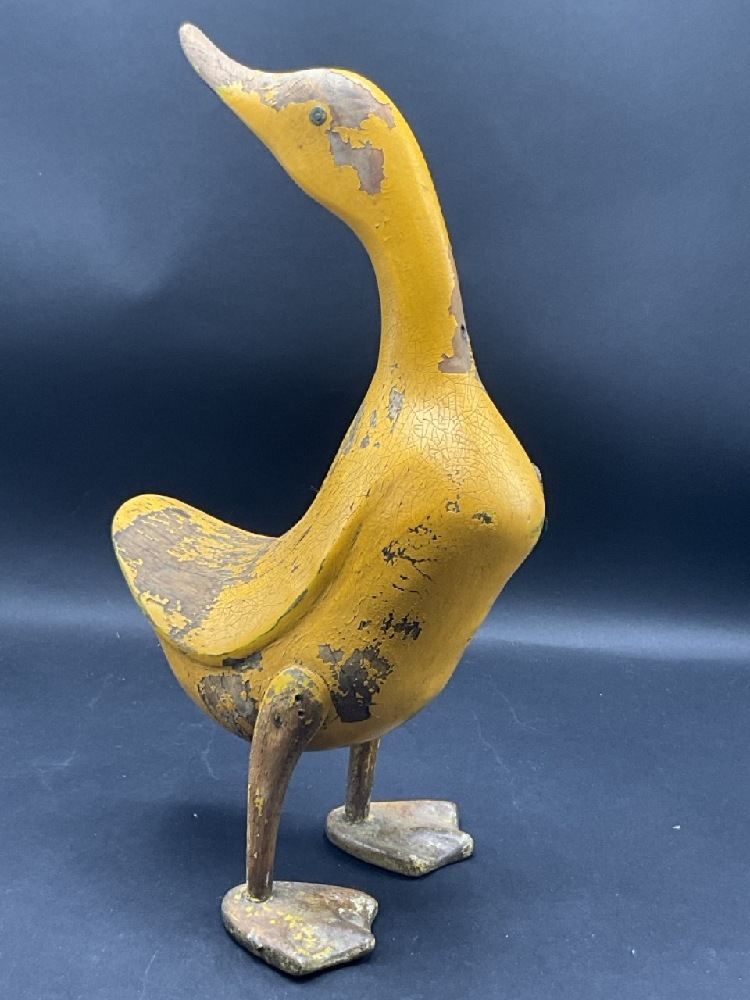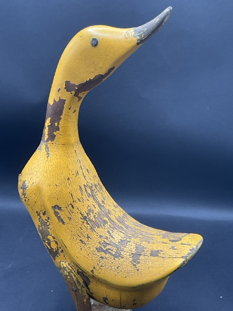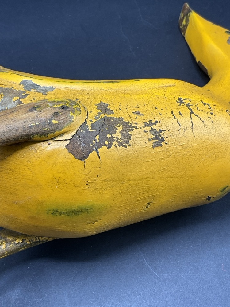Antique Yellow Carved Wood Duck