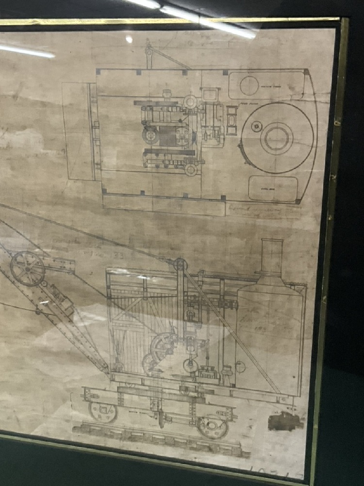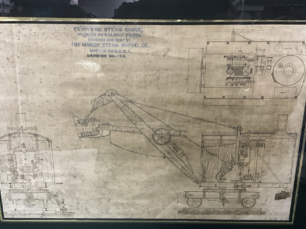 Framed Marion Steam Shovel Mechanical Drawing.