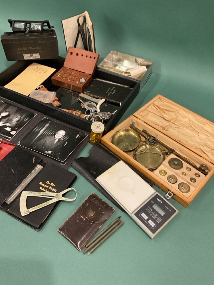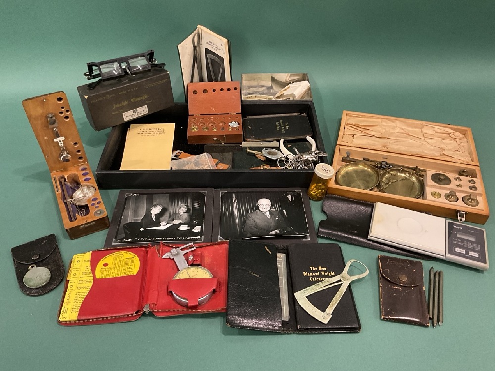 Jeweler’s or Watchmaker's Tool Lot. Scales, Magnifiers, Ephemera etc. As seen in photograph preview.