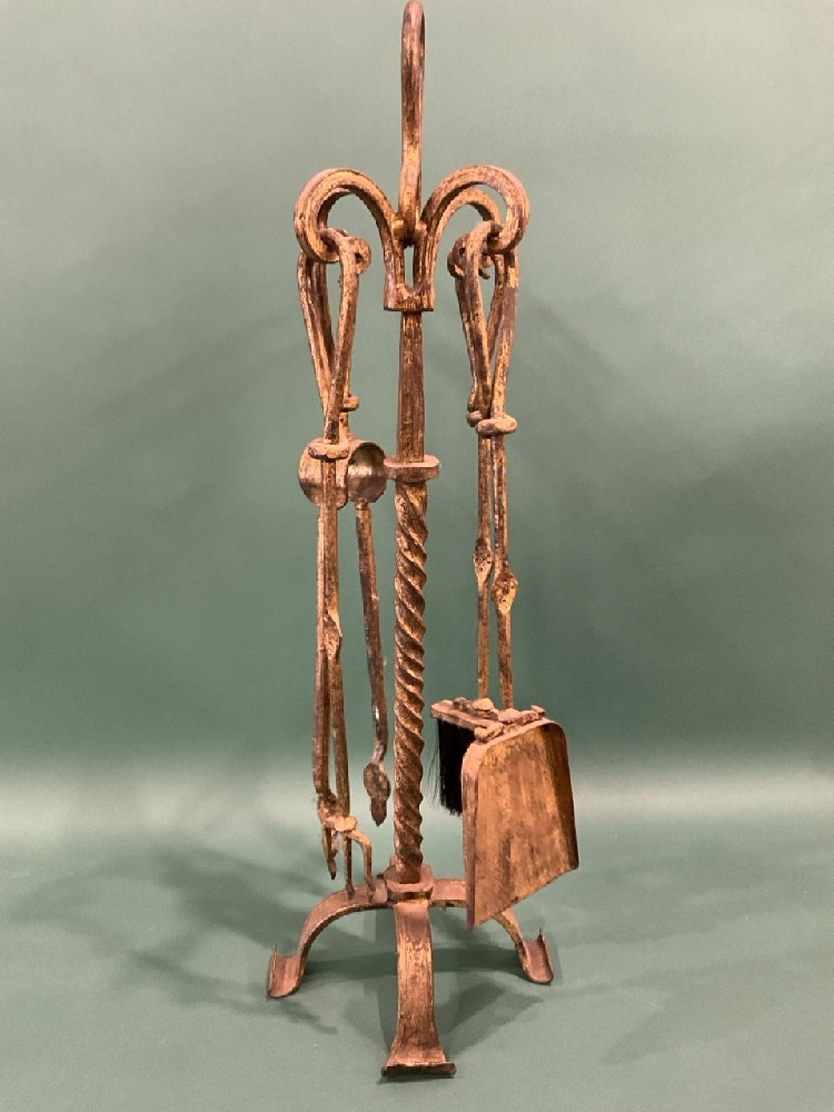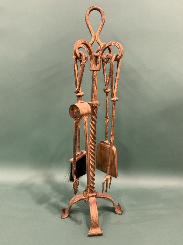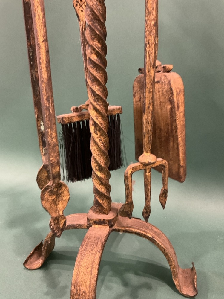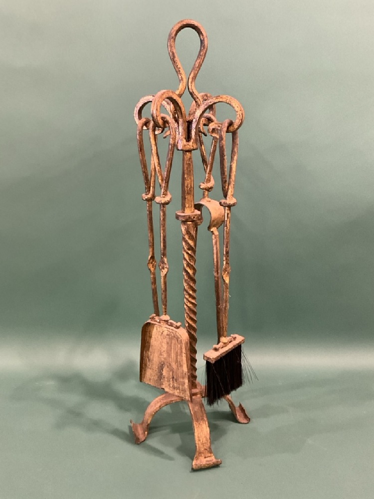 Cast Iron Fire Place Tool Set w/ Gold Paint.