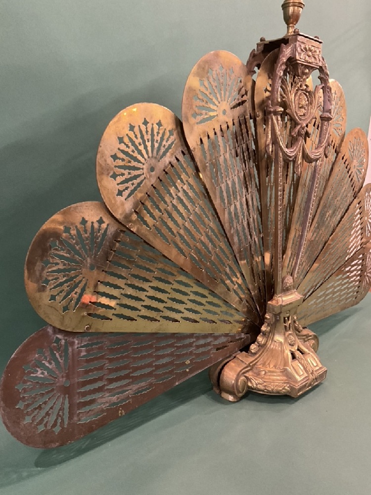 Early 1900’s Brass Peacock Folding Fireplace Screen.