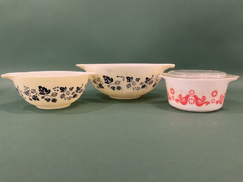 Vintage Pyrex Lot - Friendship Casserole Dish #473 & (2) Yellow Gooseberry Bowls - #442 & #444.