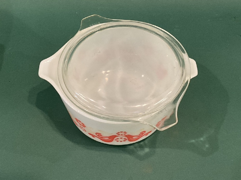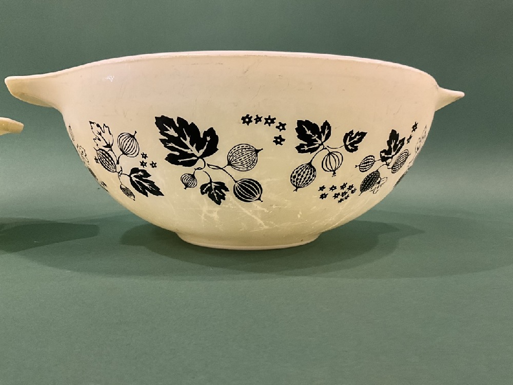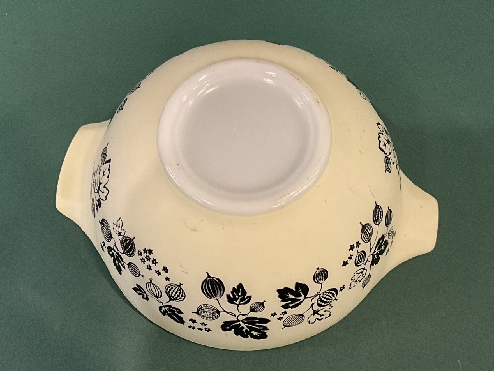 Condition - The Yellow Gooseberry Bowls have many scratches, the casserole dish has faded paint.