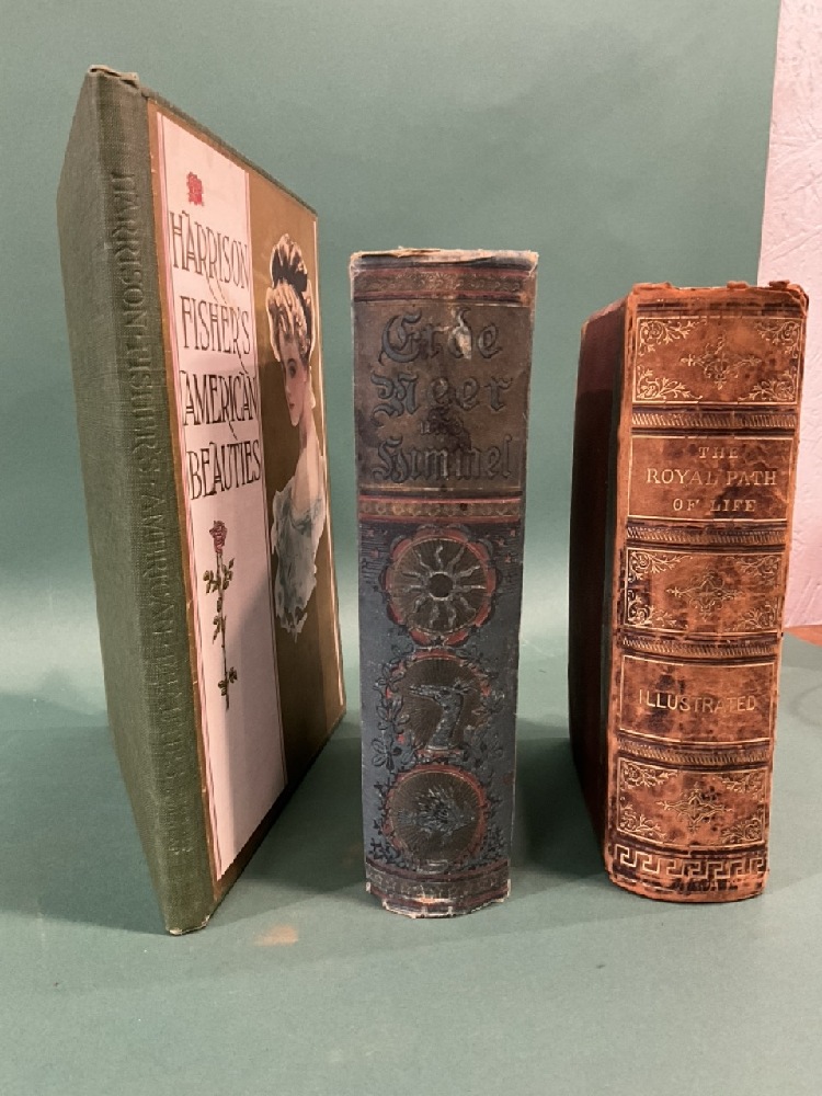 Lot of (3) Antique Books - The Path of Life, Harrison Fisher’s American Beauties, Erde Meer Und Himmel (Earth Sea & Sky).