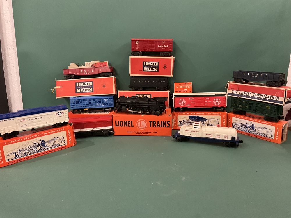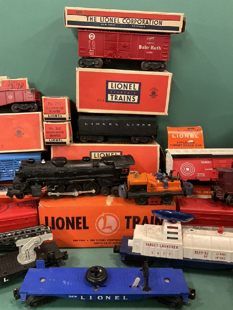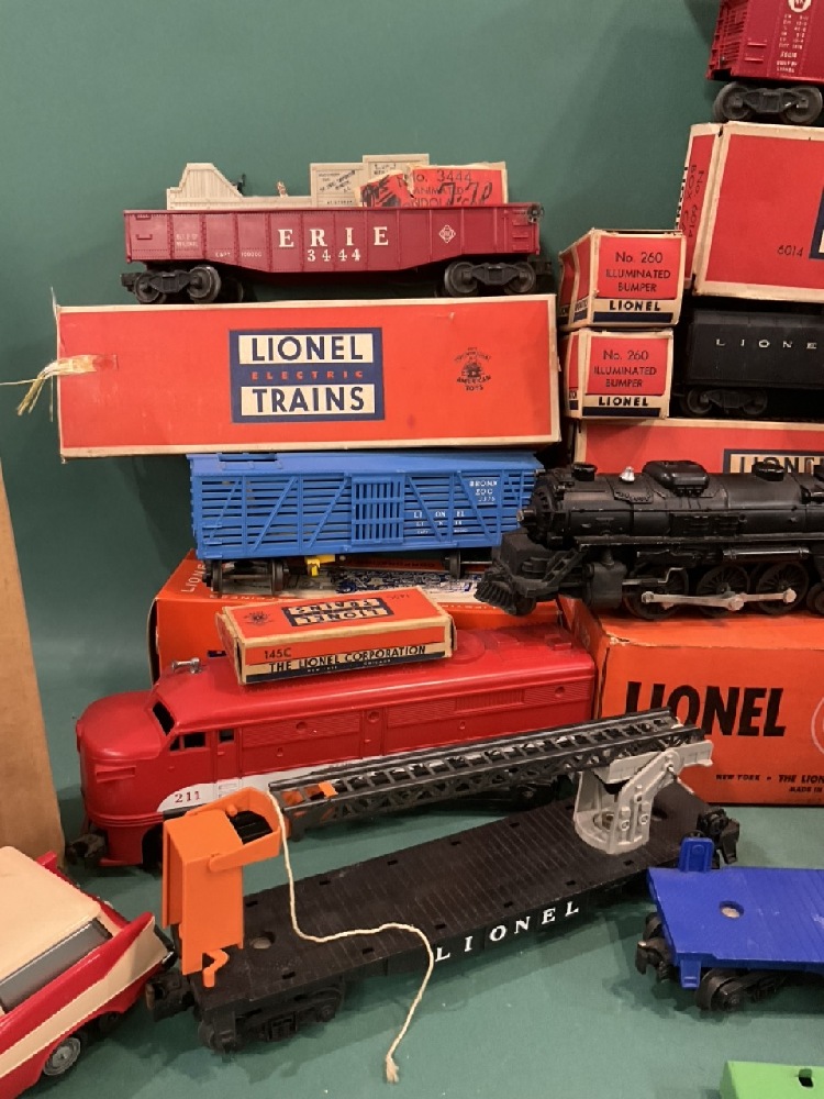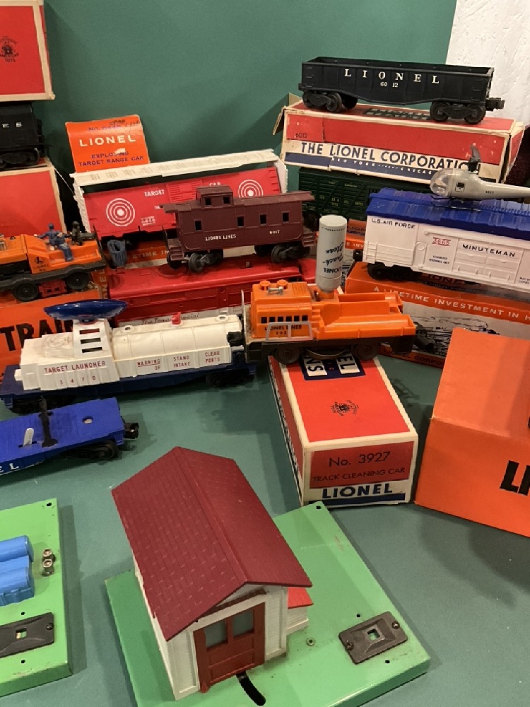 A compiled grouping of vintage Lionel trains and accessories. As seen in photograph preview.