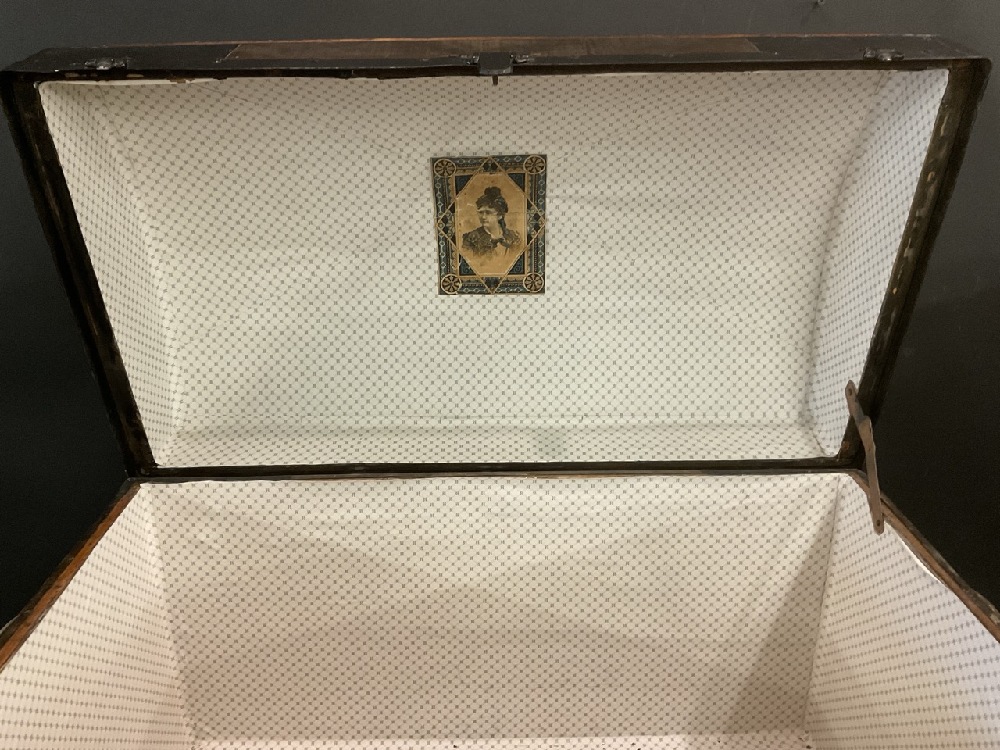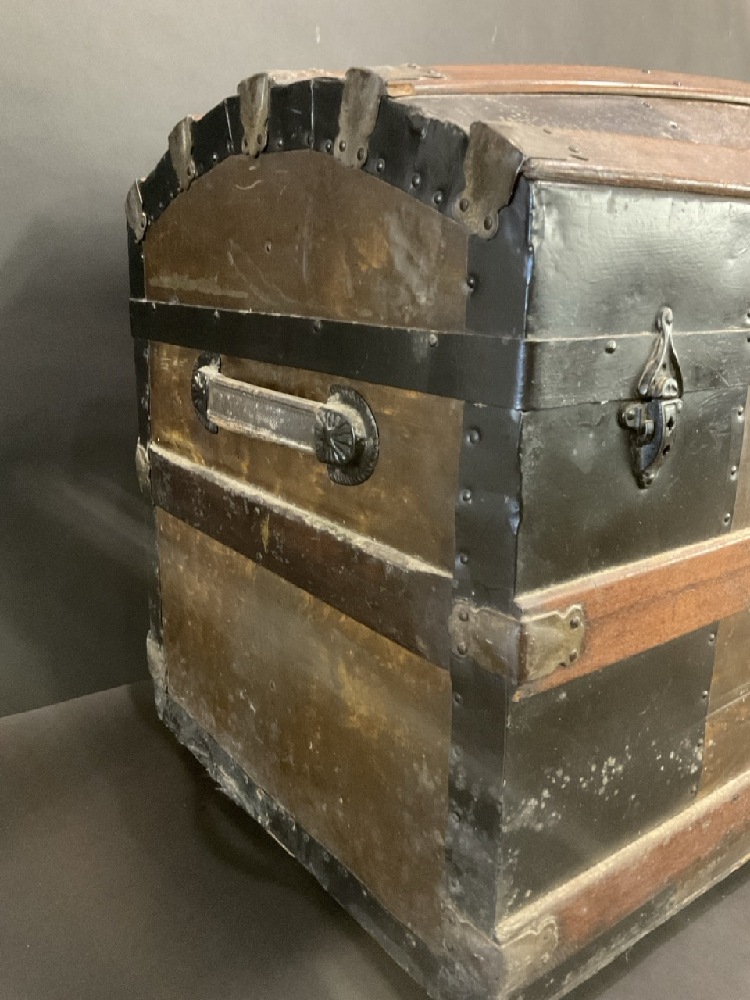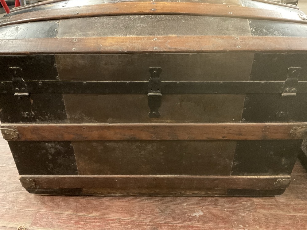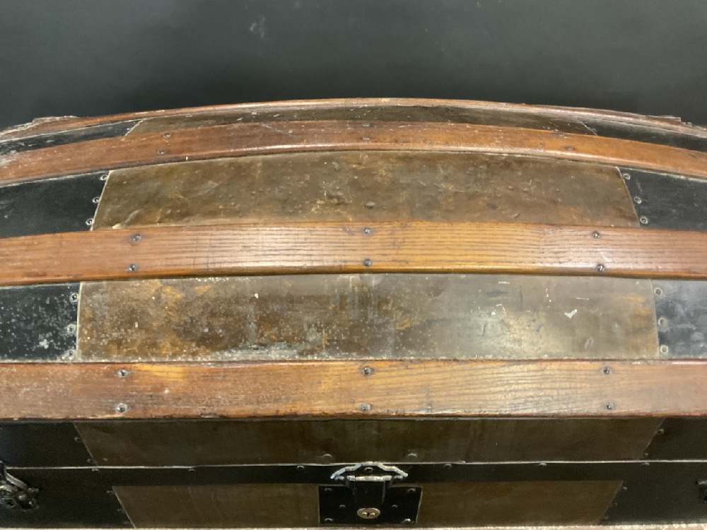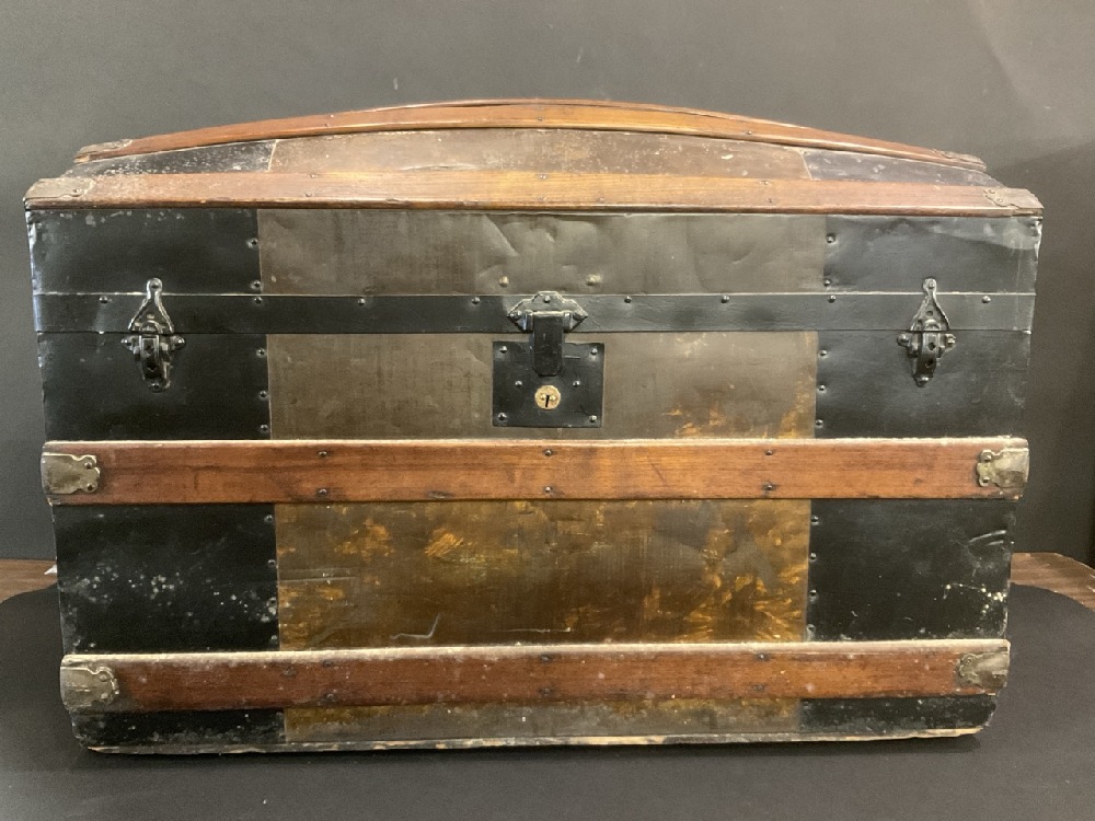 Antique 19th Century Victorian Tooled Leather & Oak Dome Top Steamer Trunk.