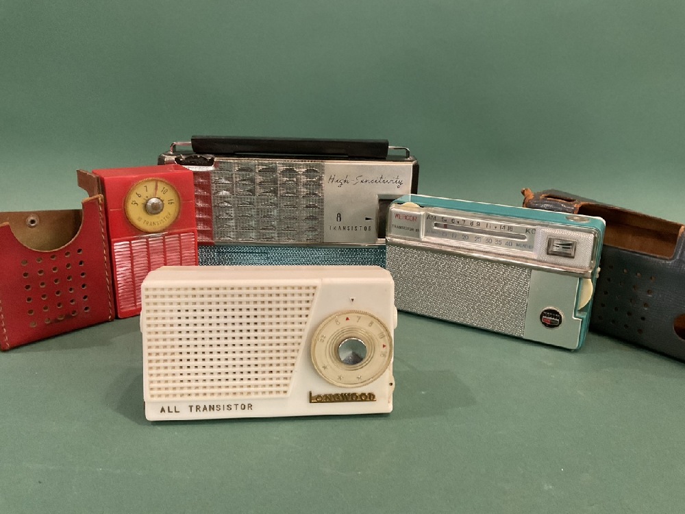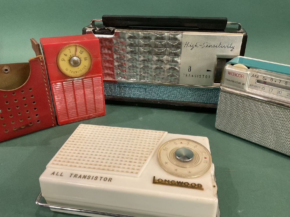 (4) Pc Vintage Transistor Radios - Webcor Transistor 8, Longwood All Transistor, 10 Transistor (Red) & High Sensitivity 8 Transistor Radio. Untested.