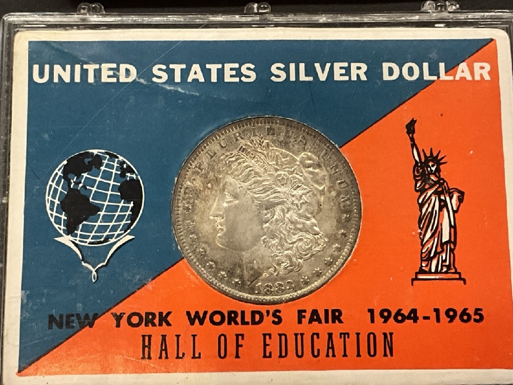 1883 0 Morgan Silver Dollar Housed in NY World’s Fair Sleeve.
