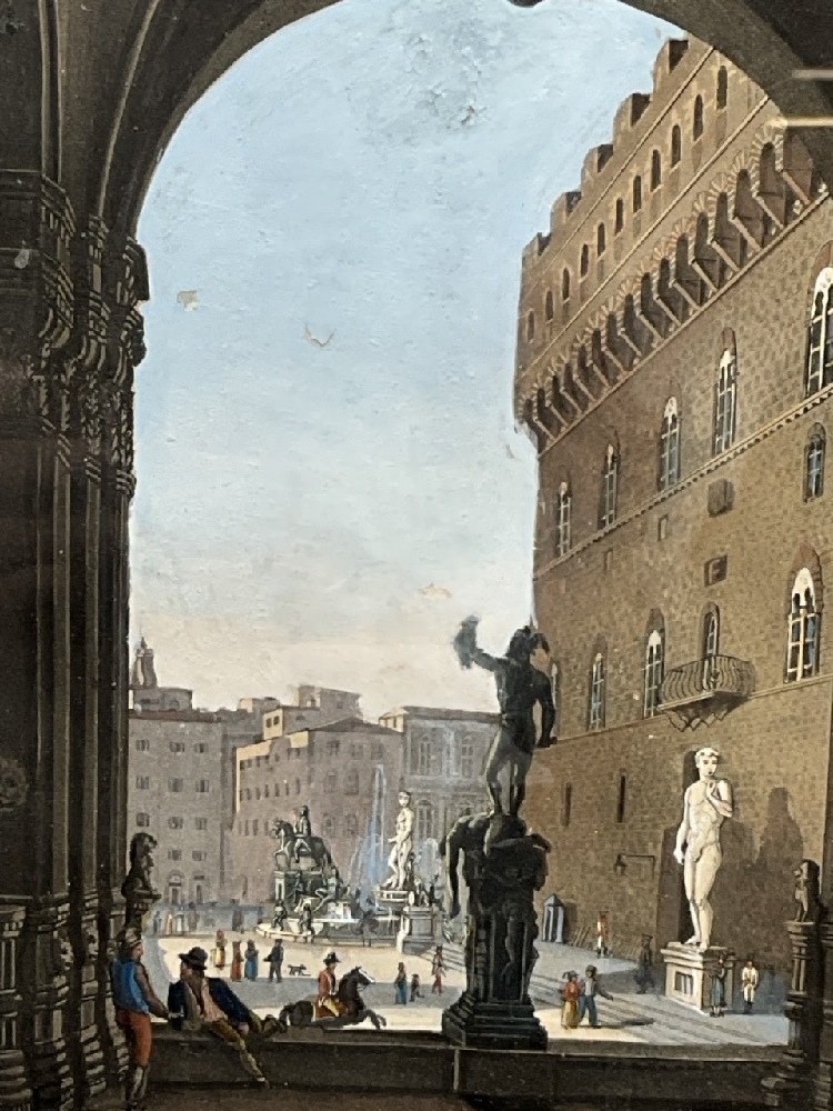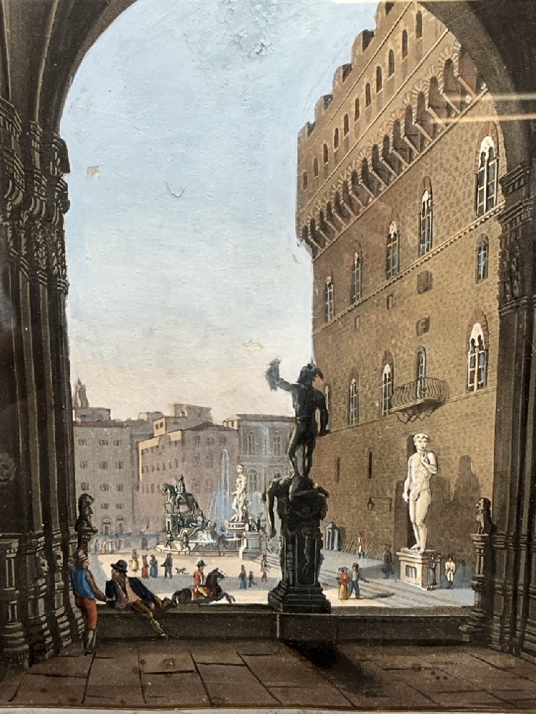 Friedrich Wilhelm Moritz (Herborn 1783-1855)The Loggia dei Lanzi in Florence. Watercolor, pencil/ paper. Created 19th century. Dimensions: 10 1/4” x 8 1/4” and 15” x 13” framed.