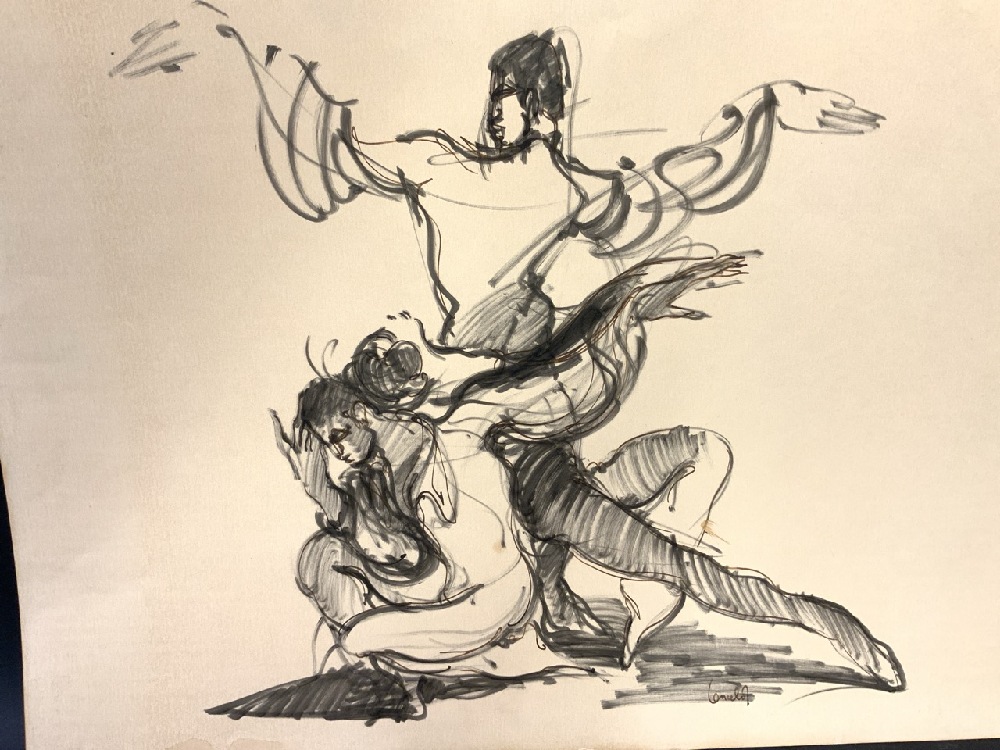 Monique Lancelot (1923 - 1982) Felt Pen Ballerina Drawing.