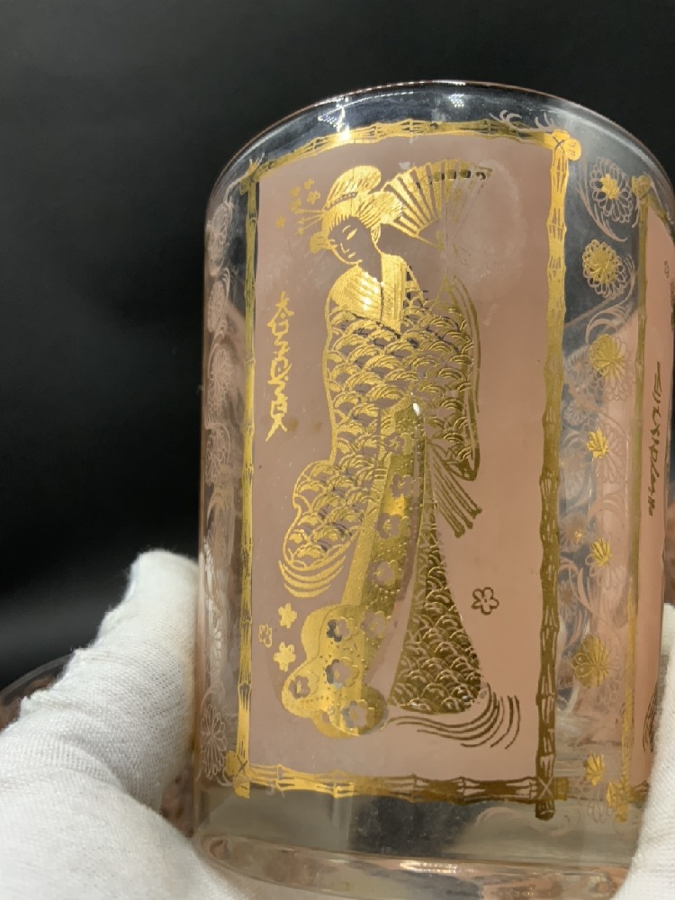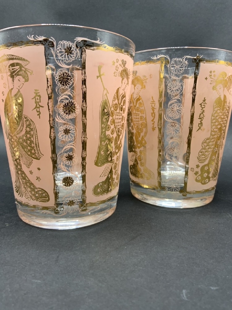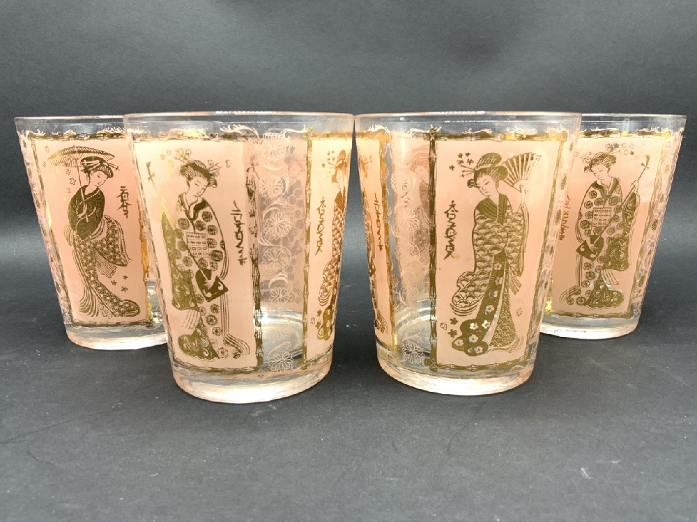 (4) 1950s Mid Century Modern Retro Geisha Girl Drinking Glasses.