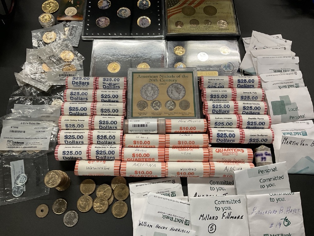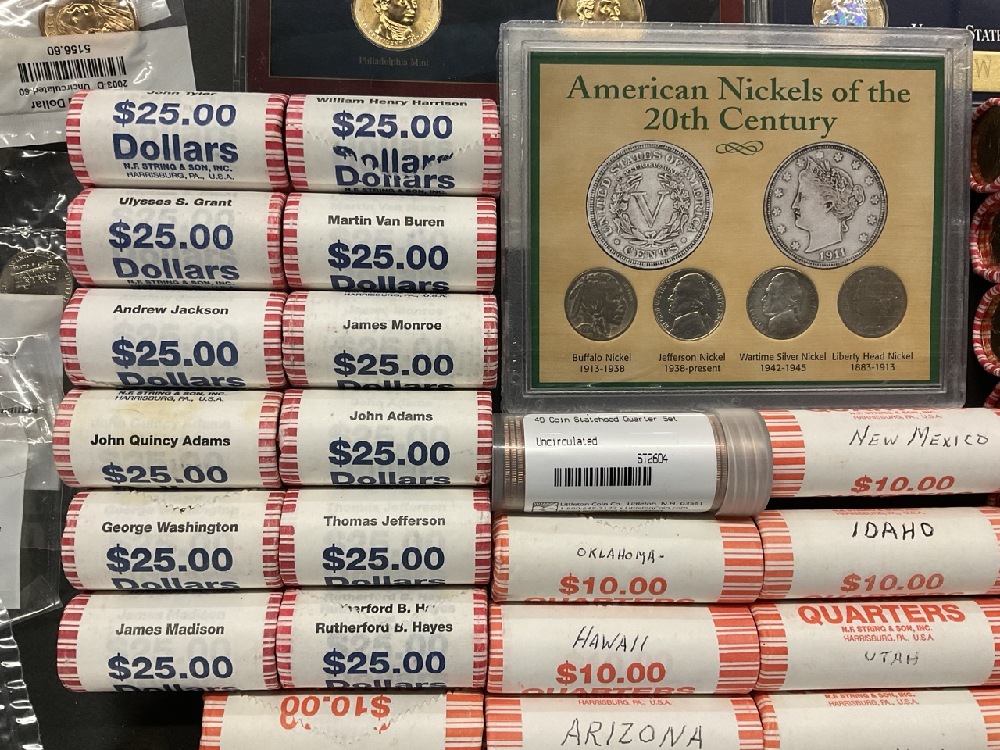 Estate Closet Find $770+ Face Value Large Coin Lot. Statehood rolls of Quarters, Presidential $25 Dollar Rolls, Presentation Sets and More!