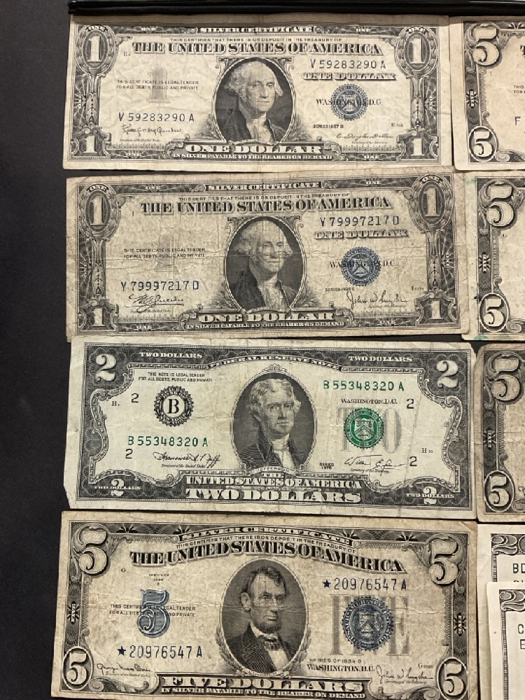$163 Face Value FRN’s, Silver Certificates, Dollars.