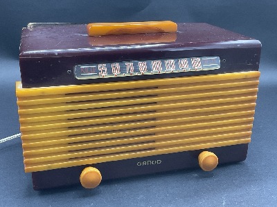 Garod Bakelite Radio. Dimensions: 8 1/2" X 11 1/2" X 6" Dimensions: 8 1/2” x 11 1/2” x 6” Not working Powers on.
