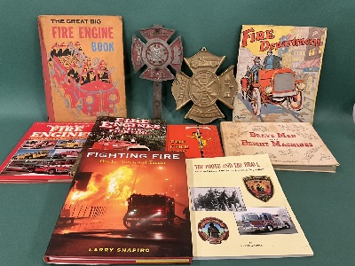 Fire Memorabilia Lot - Chester Fire Department - Signed Radzinsky Brave Men & Bright Machines, Middletown, New York etc. Dimensions: Red Plaque - 12” x 6 1/4” Gold Plaque - 9 1/2” x 8 1/4”