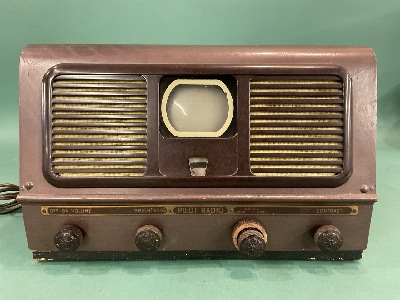 1948 Pilot Radio TV Model 37. Radio turns on. The Tv is not working. Dimensions: 9 1/2” x 14 1/2” x 14”