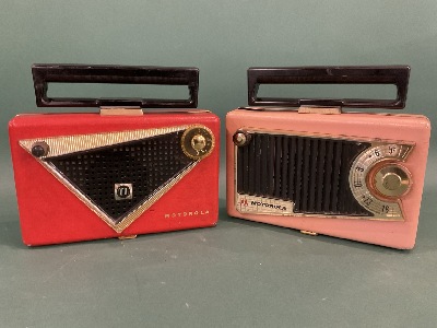 Two 1950s Motorola Radios (55L3U). Serial no. 13292 & 56 L3 - 17756. Untested. Dimensions: 9” x 10” x 2”