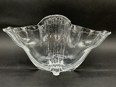 Hand Signed Steuben Glass Centerpiece Bowl or Pillow Vase. Some sediment noted at interior of base. Cleaning needed. No chips or cracks. Signed at base. Dimensions: 7” x 12”