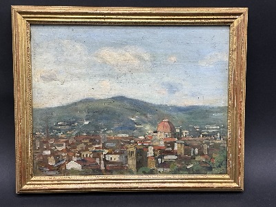 Alson Skinner Clark (1876-1949) Oil on panel. Titled: View of an Italian City (Florence, 1904). Dimensions: 8 1/2” x 10 1/2” and 7 1/4"” x 9 1/2"” Provenance: Swann Galleries, New York Sale 17th September,2020