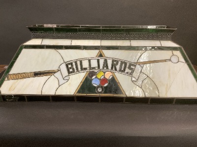Billiards Slag Glass Pool Table Light Fixture. Dimensions: 14” x 42 1/2” x 17”