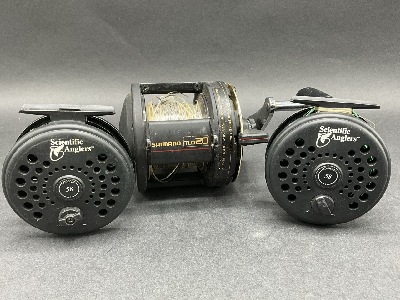 (3) Vintage Fishing Reels - Scientific Anglers & Shimano TLD20. Dimensions: Lg - 5” x 7” Sm - 4” x 3 1/2”