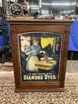 Rare Diamond Dyes Victorian General Store Display Cabinet. Very good color. Condition: Missing hook for lock. Dimensions: 29 1/2” x 23” x 10”