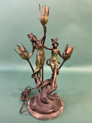Aft August Moreau Signed" Le Danse Des Nymphes" Bronze Lamp. Dimensions: 25” x 9”