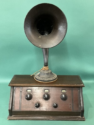 Chelsea Super 5 Battery Radio with Horn Speaker Circa 1927. Condition: Not Working. 14lbs. Dimensions: 9” x 22” x 10 1/2” Inv. 45