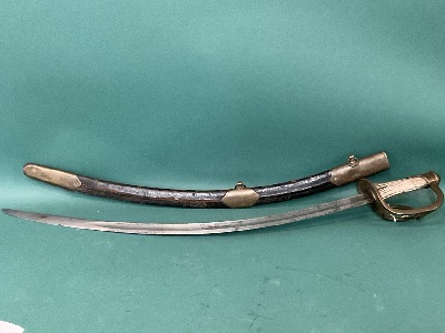 Horstmann Philadelphia Sword w/ Scabbard. Blade signed Horstmann, Philadelphia. Stag handle with brass. Dimensions: 32” Length