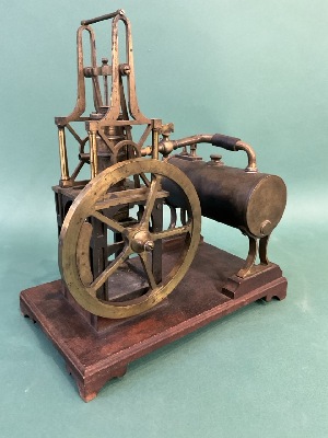 All Brass Model of a Table Steam Engine & Boiler on Wood Base. Dimensions: 10” x 8” x 11” Inv. 34