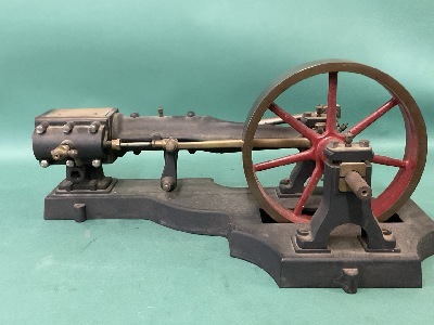 Antique Steam Engine Model Brass & Iron. Dimensions: 8 1/2” x 15” x 5” Wheel - 6 3/4” Inv. 25