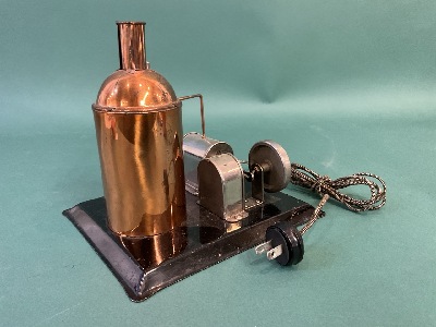 Unmarked “Steam Engine” Toy Motor w/ Copper Boiler. Conducted: not working. Dimensions: 7” x 6 1/2” x 8” Inv. 73