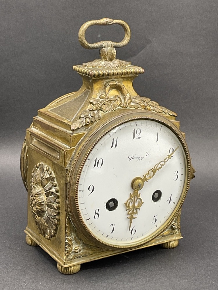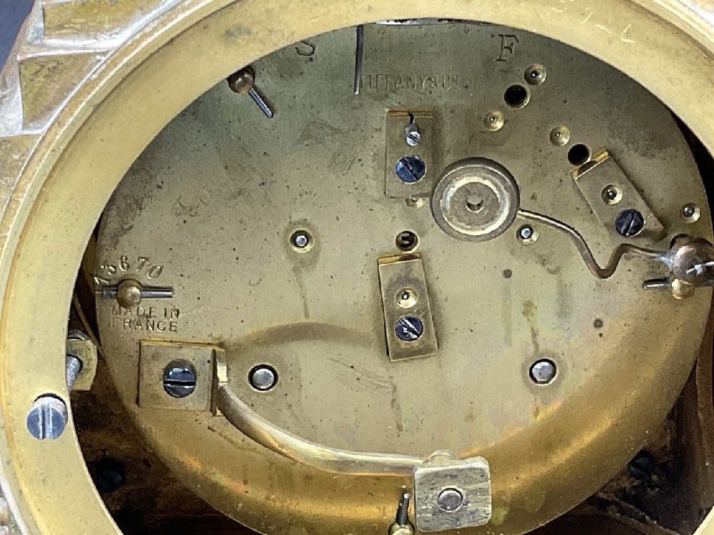 Louis XVI Style 19th C. French Bronze Tiffany & Co. Clock. Nice patina. Includes key (not original).