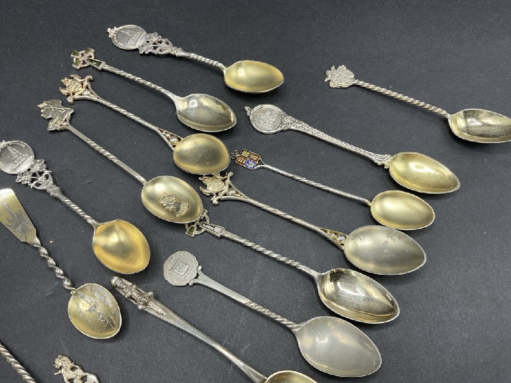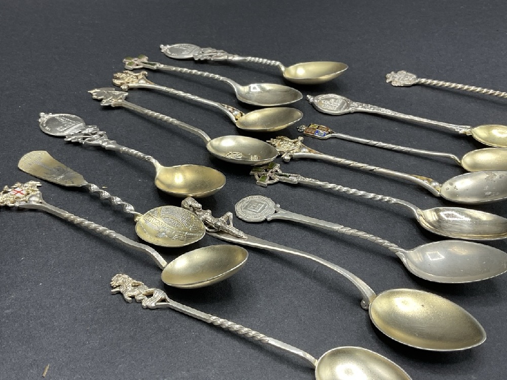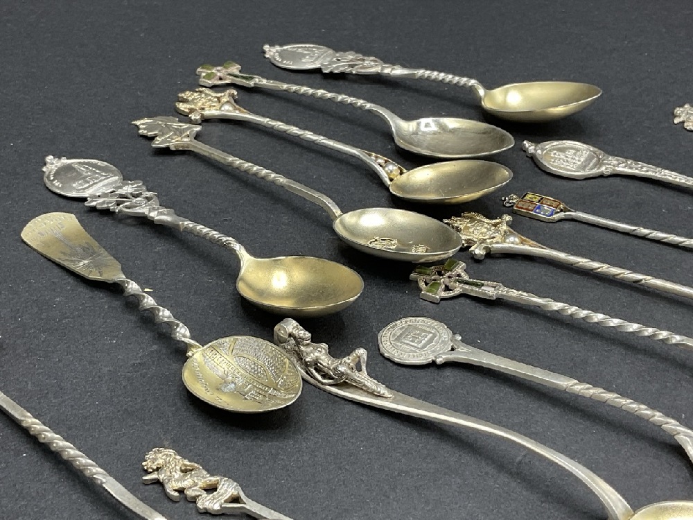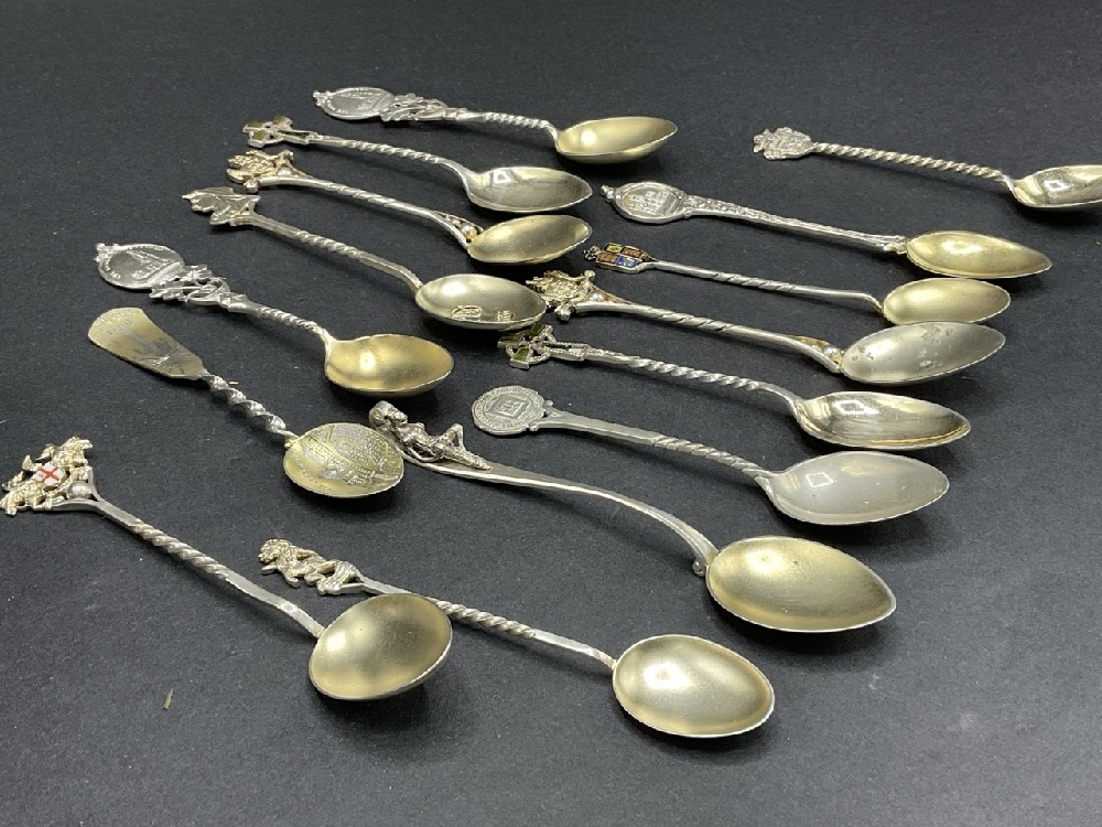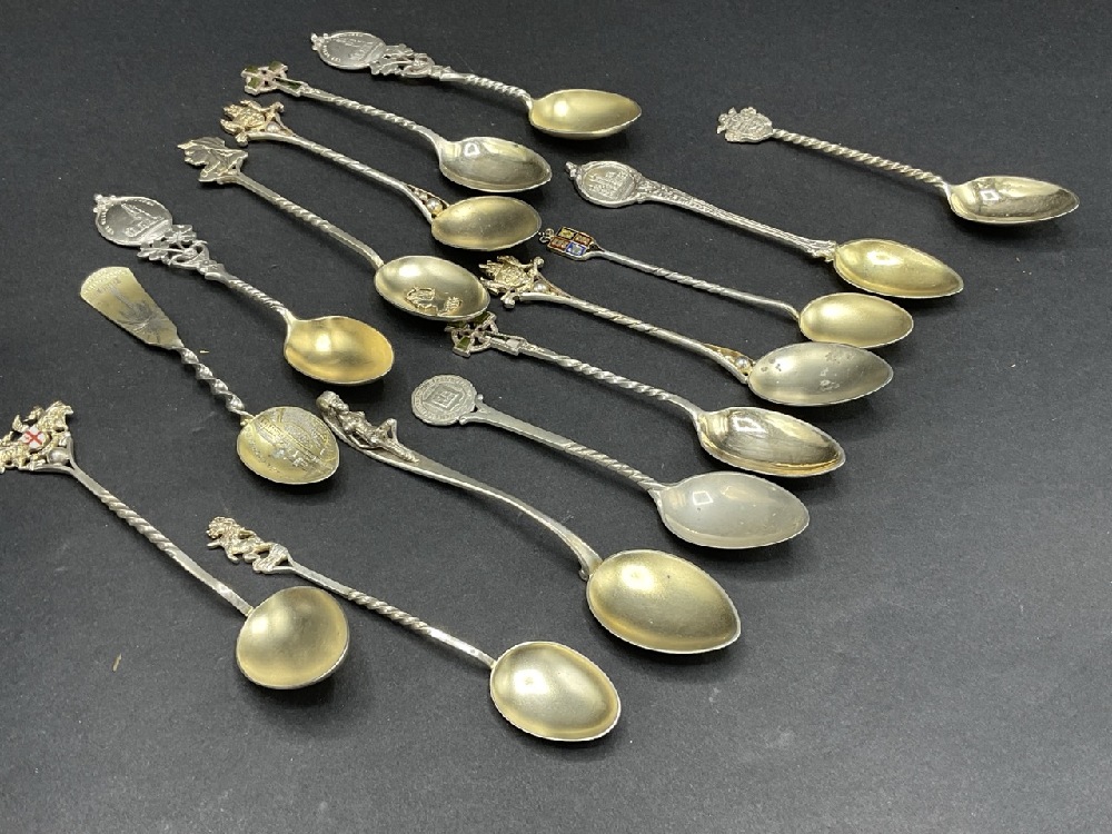 Compiled Sterling Silver Antique/Vintage Souvenir Spoons. Fifteen (15) quantity.