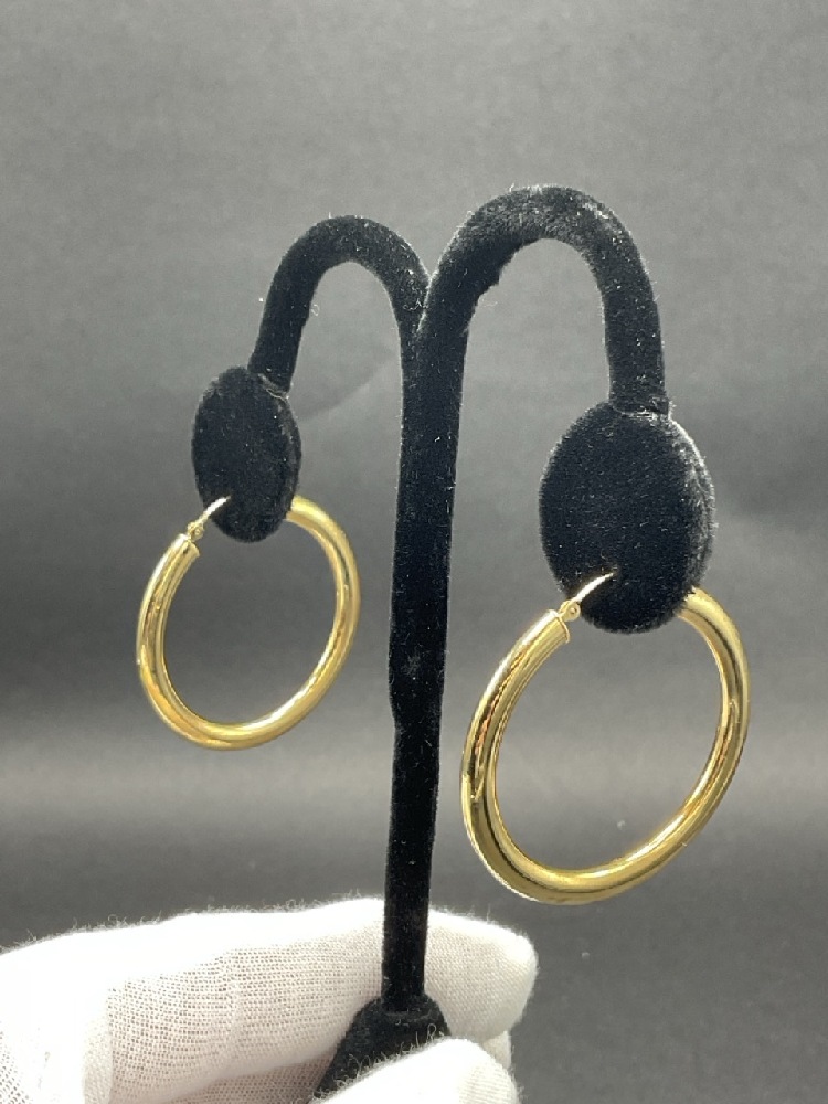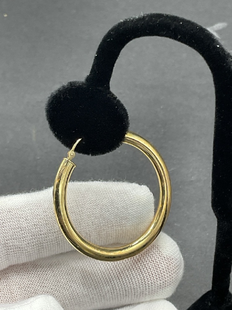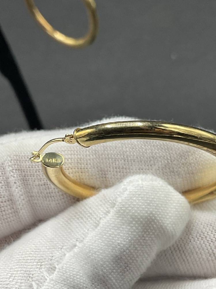 Large 1 1/2” 14K Yellow Gold Hoop Earrings.