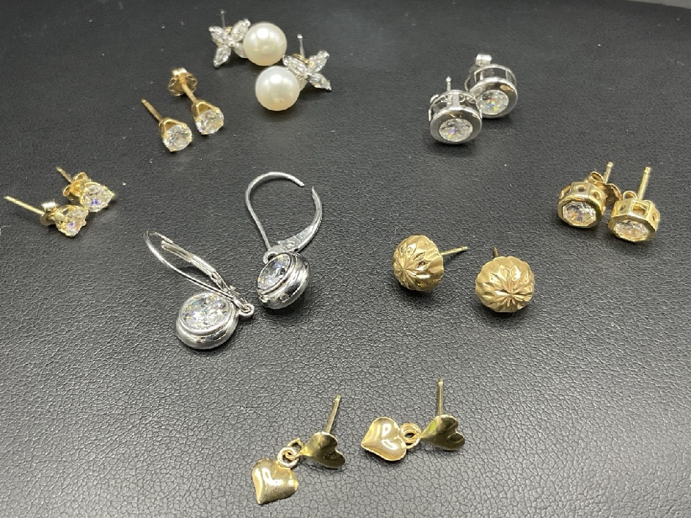 Eight (8) Pairs 14K Gold Assorted Earrings.