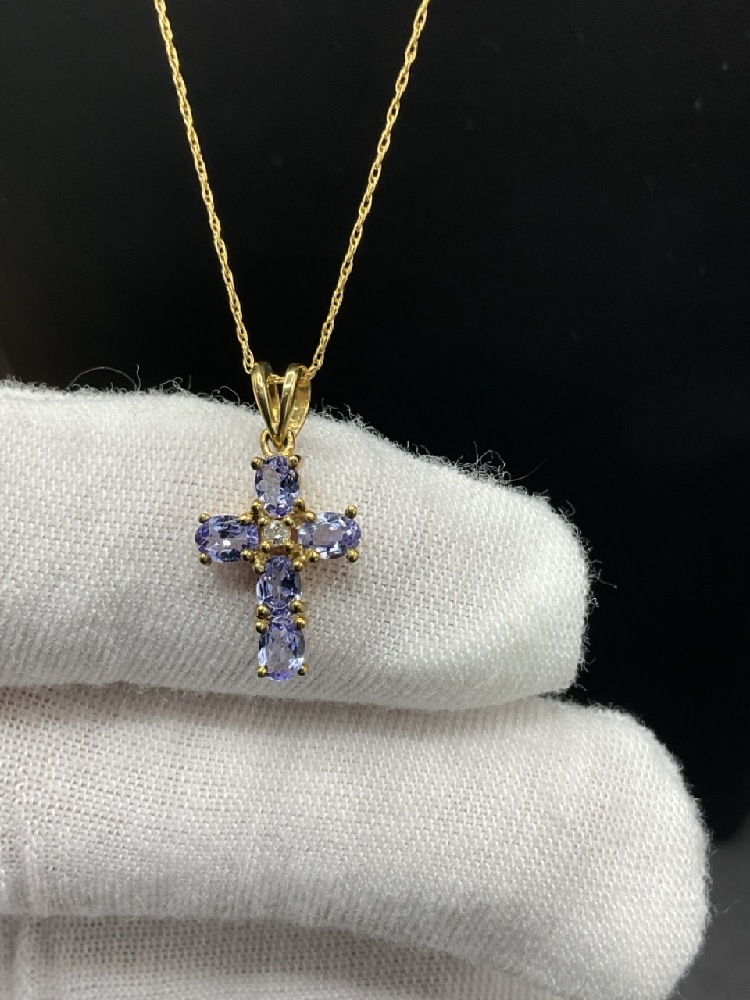 10K Yellow Gold Easter Amethyst Cross Necklace.