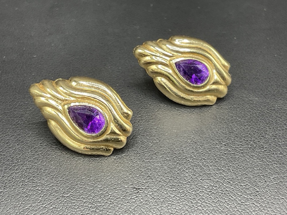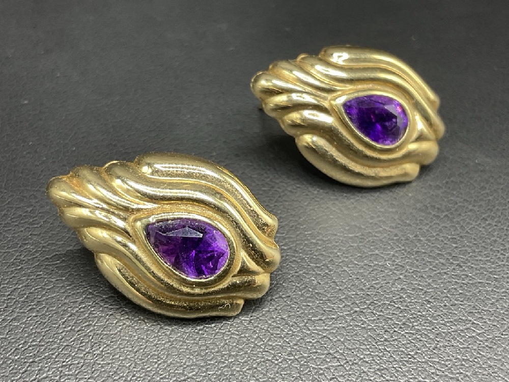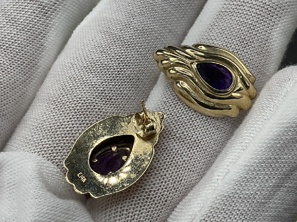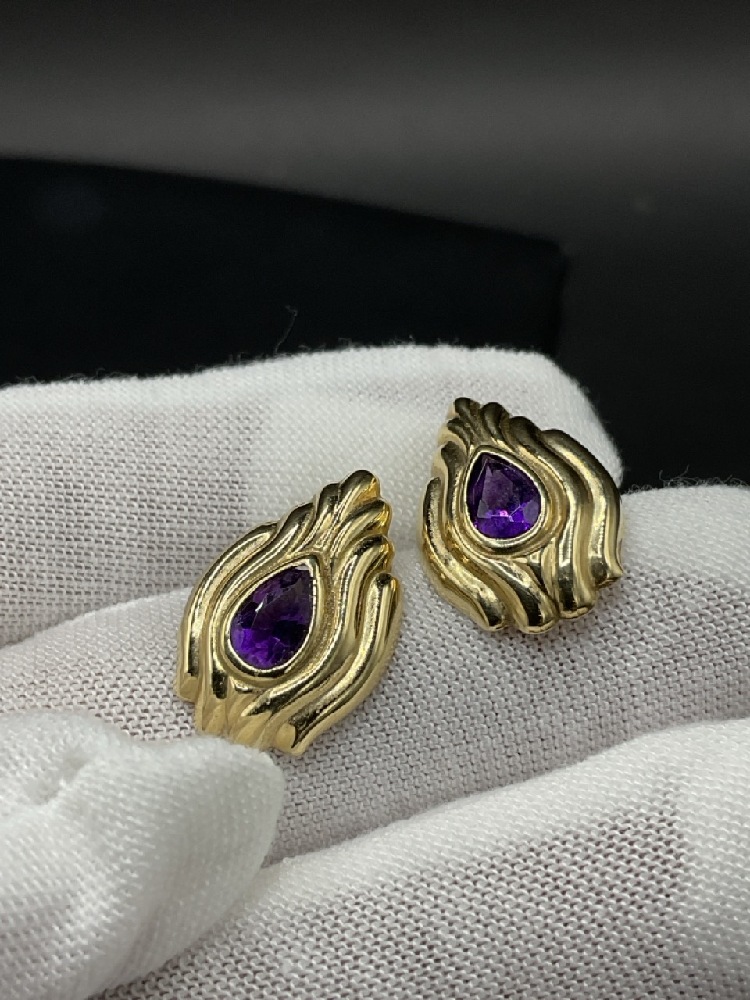 14K Yellow Gold Amethyst Earrings.