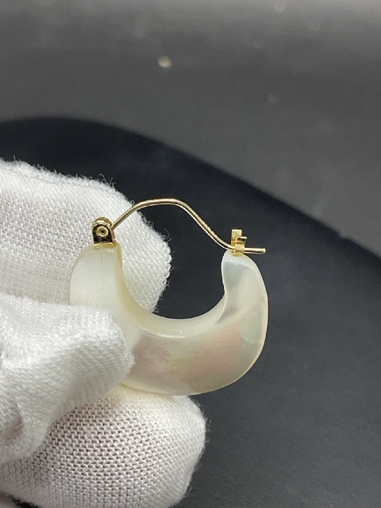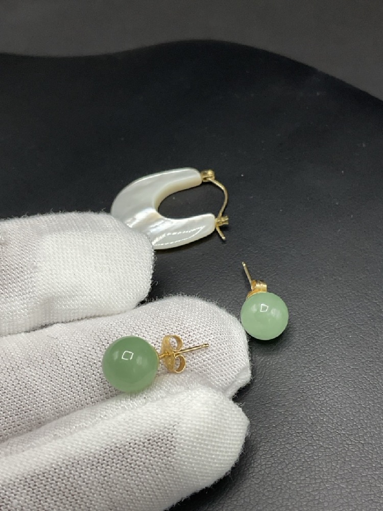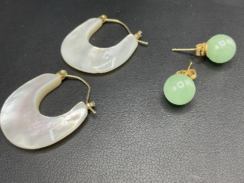 Two (2) Pairs 14K YG Earrings Mother-of-Pearl, Jade.