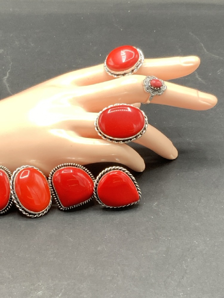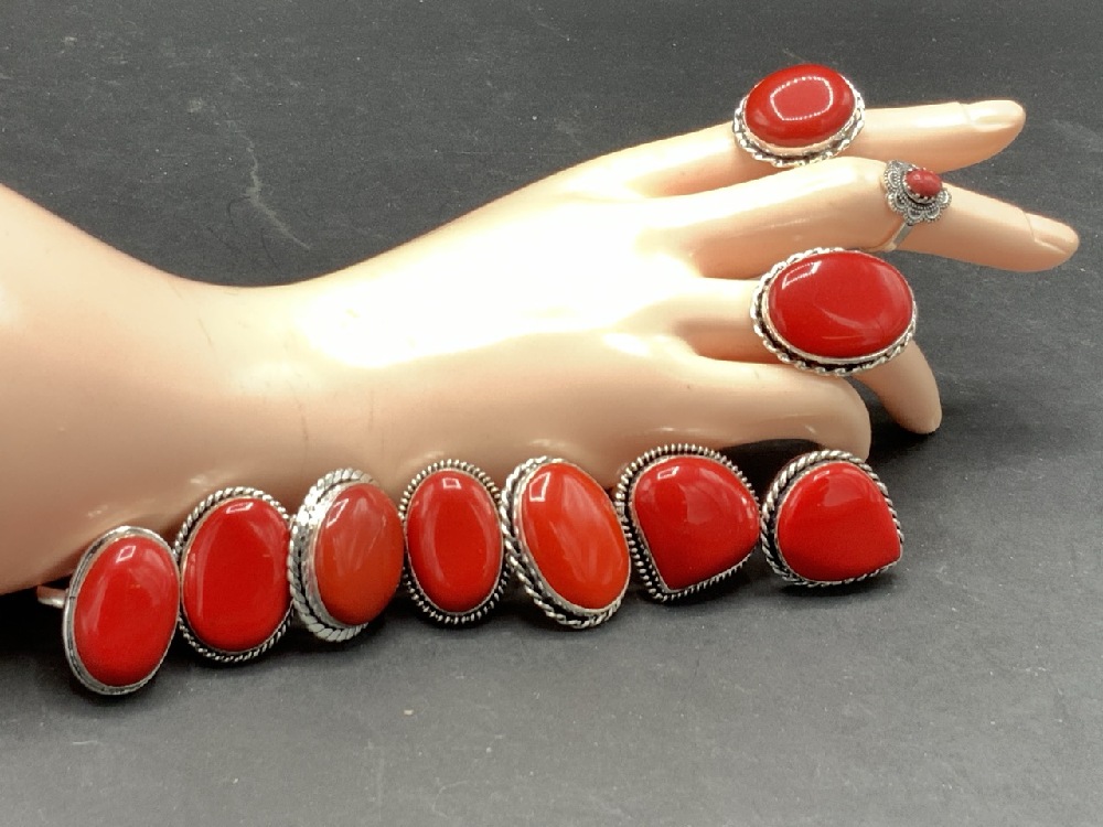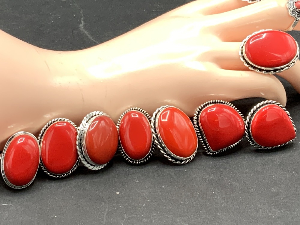 Ten (10) New/Old Stock Sterling Silver Rings with Carnelian stones.