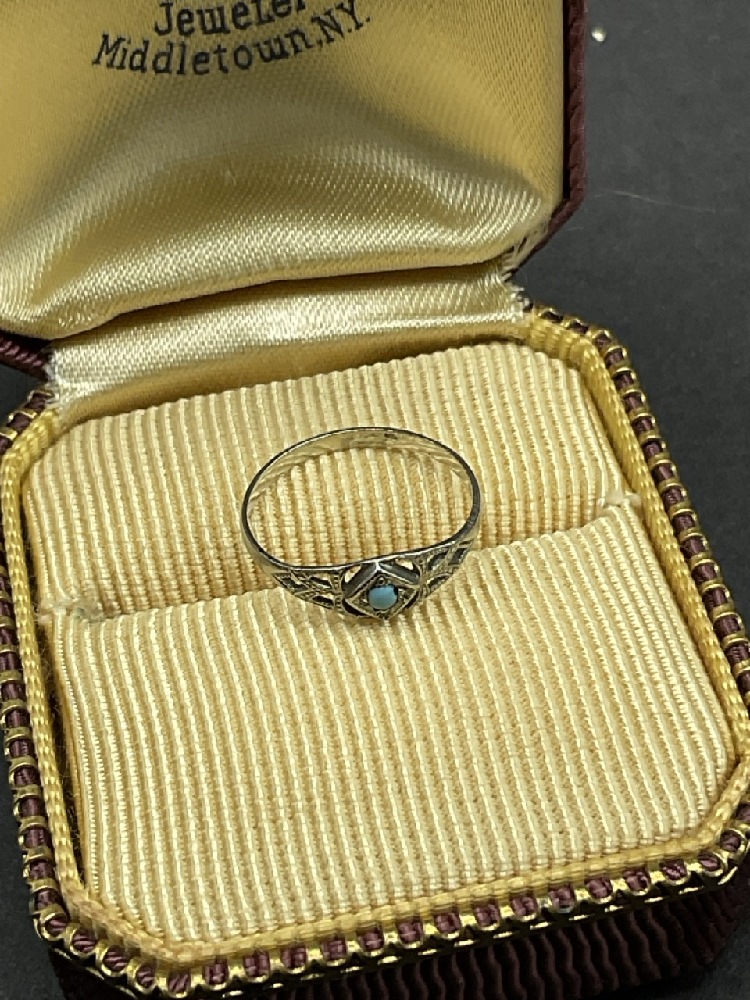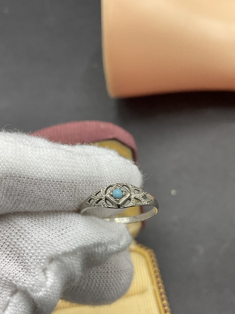 Antique 10K White Gold Baby ring with small turquoise stone.