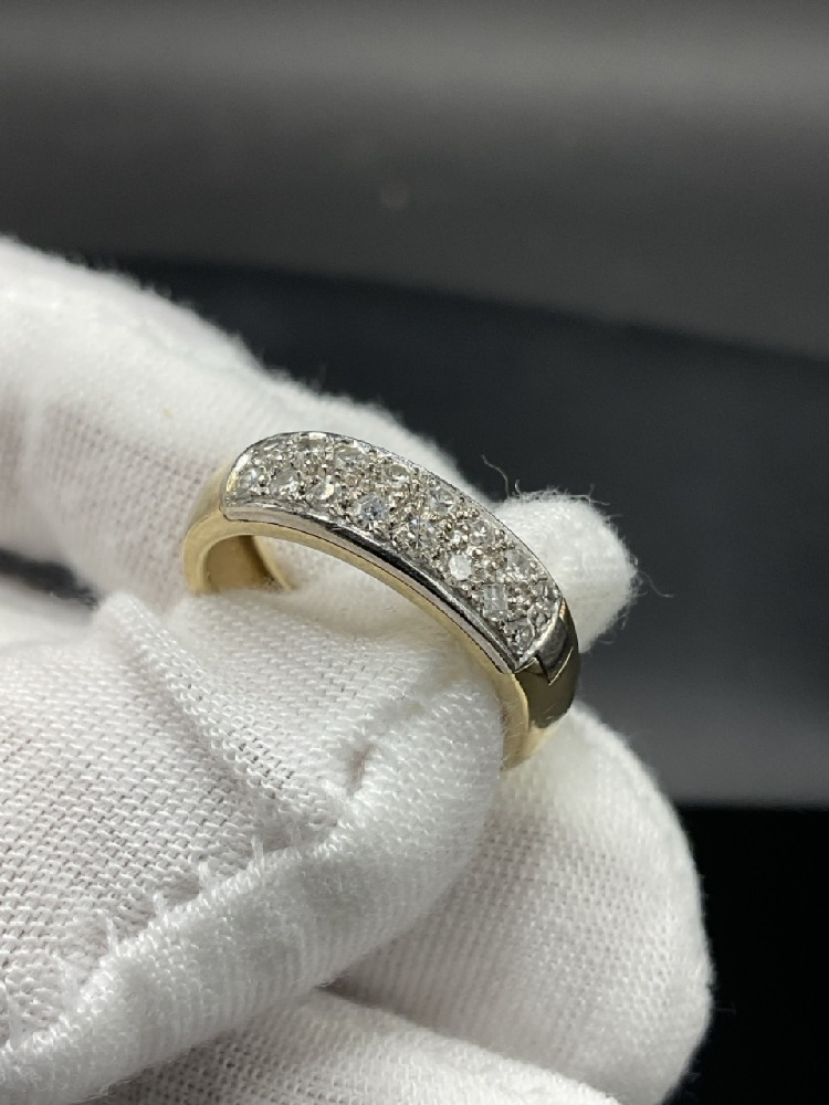 14K Yellow Gold Diamond Cluster Ring.