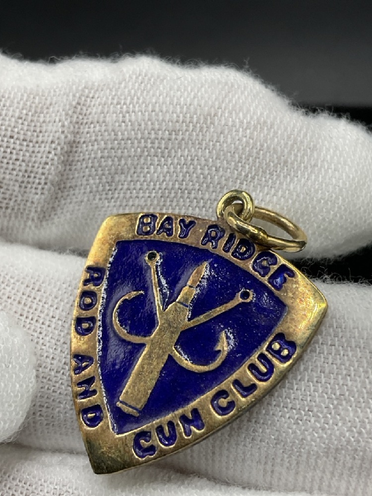 14K Yellow Gold Enameled Bay Ridge Brooklyn Medal or Fob. The Bay Ridge Rod and Gun Club.
